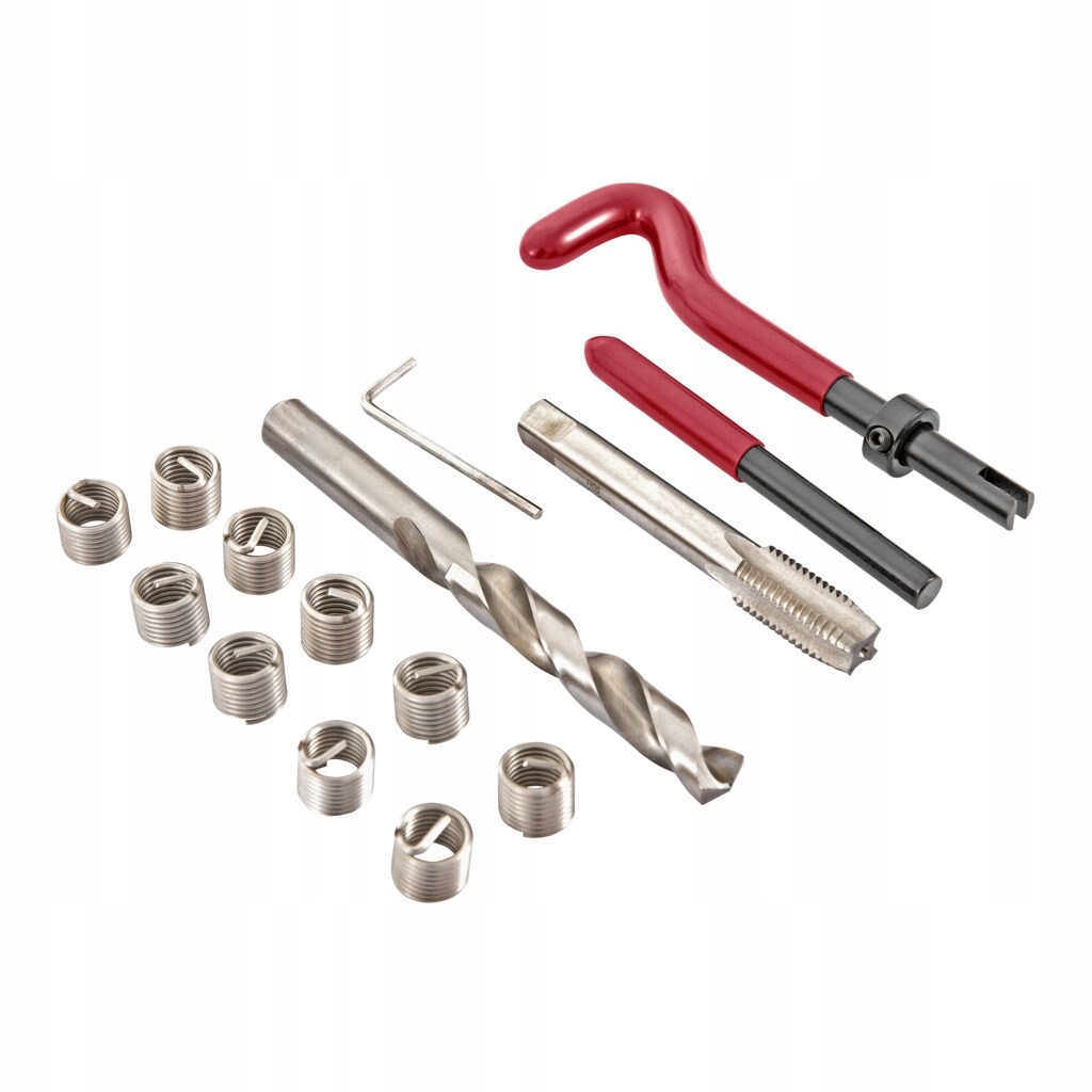 цей набір для ремонту різьби від Meec Tools включає крани, монтажний інструмент та вставки – все, що вам потрібно для заміни пошкодженої різьби на нову різьбову вставку. Інструмент і Свердла виготовлені зі сталі HSS, а вставки-з нержавіючої сталі 304. Всі компоненти поставляються в зручній жерстяній коробці.