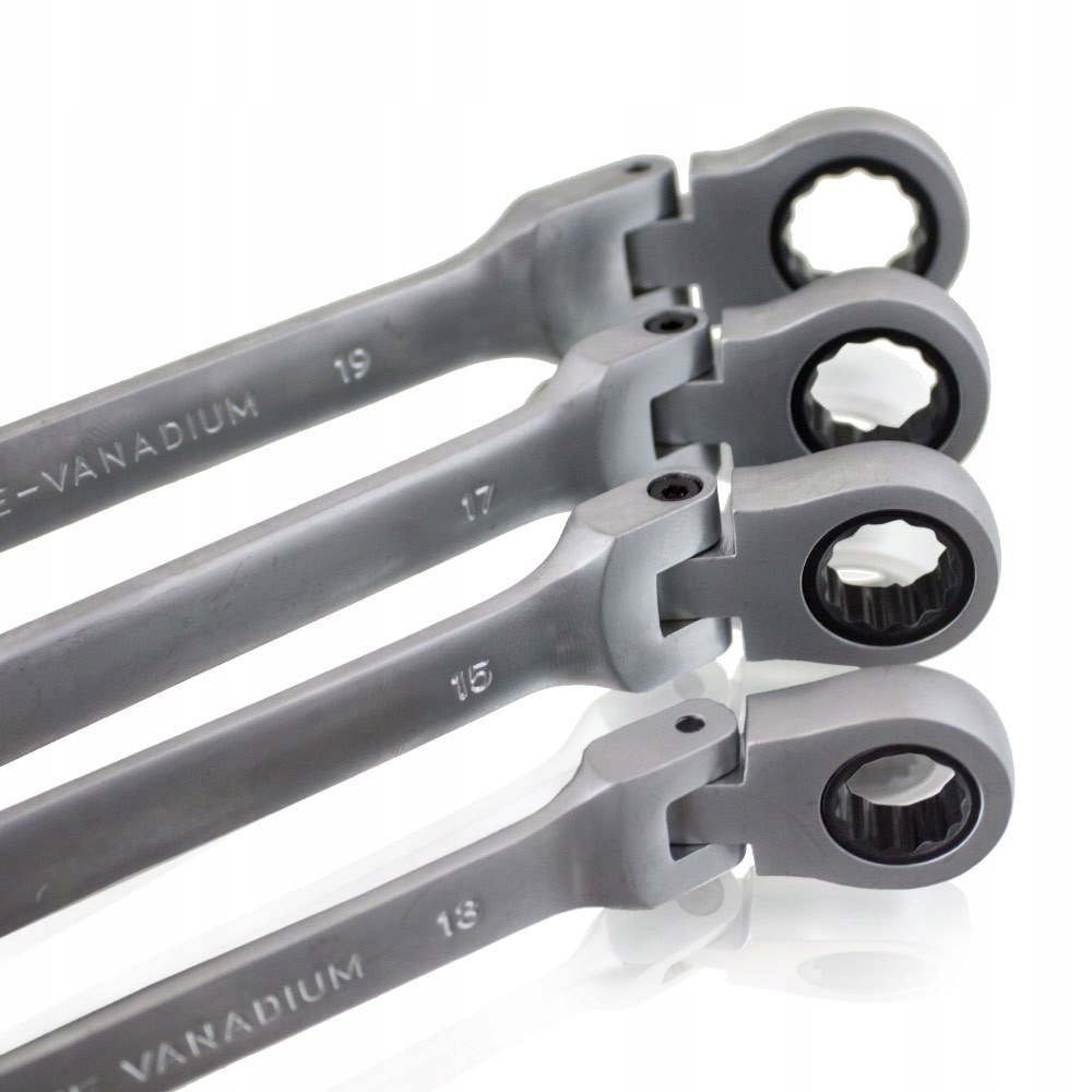 набір з 12 гайкових ключів з шарнірним з'єднанням, виготовлених з міцної хромованадієвої сталі (CrV). Вони знайдуть застосування в професійних автосервісах, а також в домашньому гаражі. е>