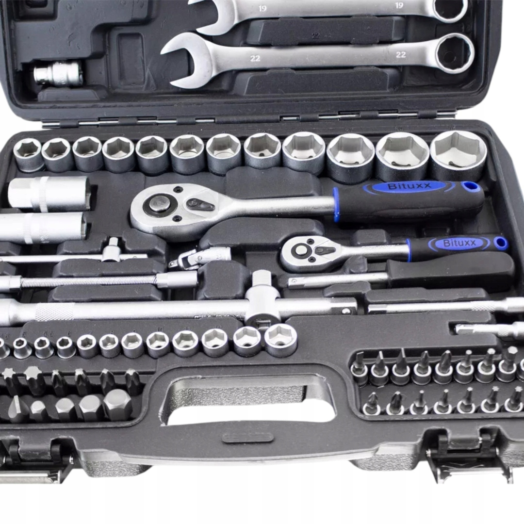 Ідеально підходить для ентузіастів і професіоналів своїми руками, включає широкий вибір головок, насадок, гайкових ключів і аксесуари.