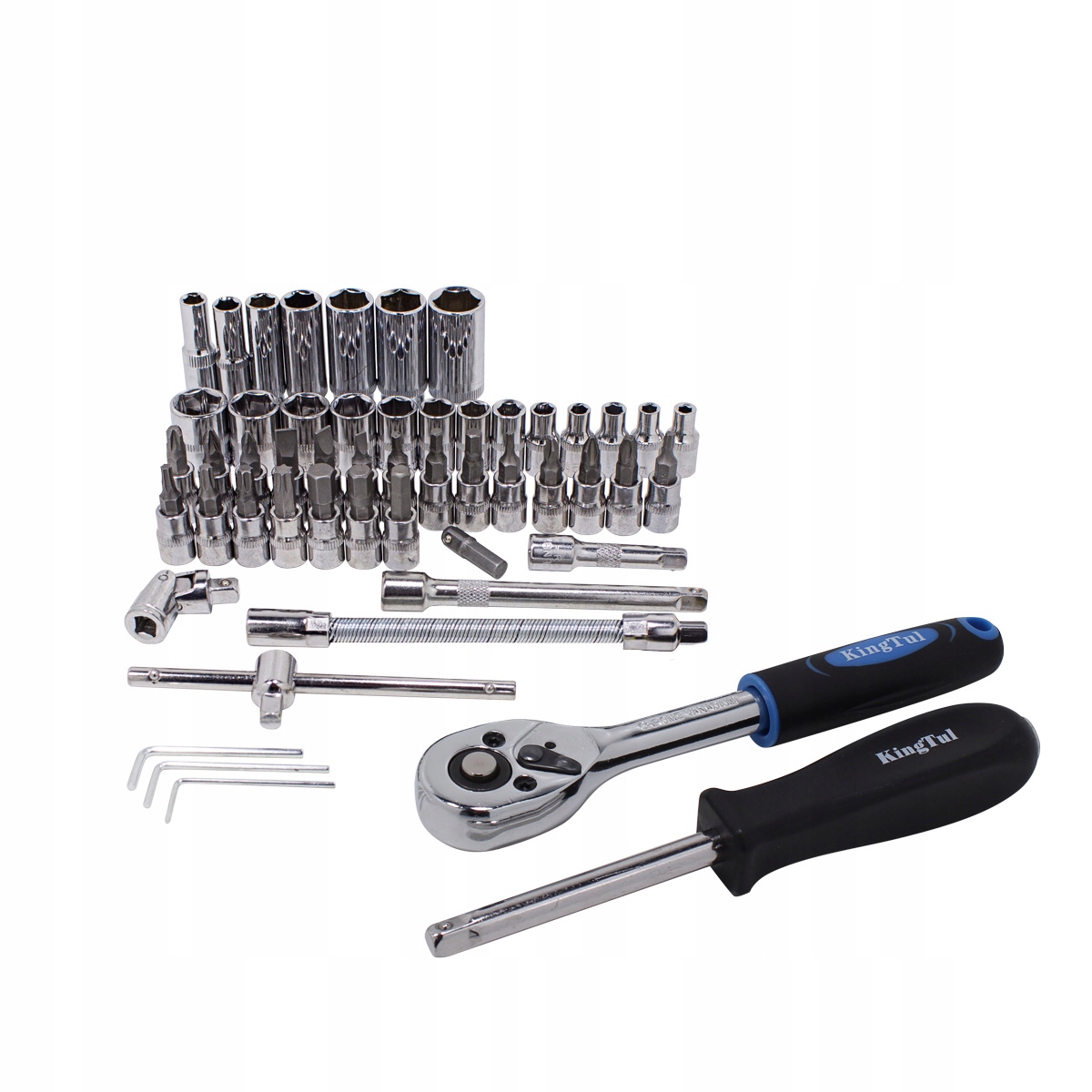 У комплект входить тріскачка з міцним храповим механізмом. У набір входить багатий набір головок (розміром від 4 до 14 мм) і головок для свічок , насадок для викрутки (плоскі , хрест , шестикутник, Torx). Доповнюється подовжувачами (у тому числі гнучким), карданним шарніром, шестигранними ключами, ручкою Т-подібного типу та тримачем біт .