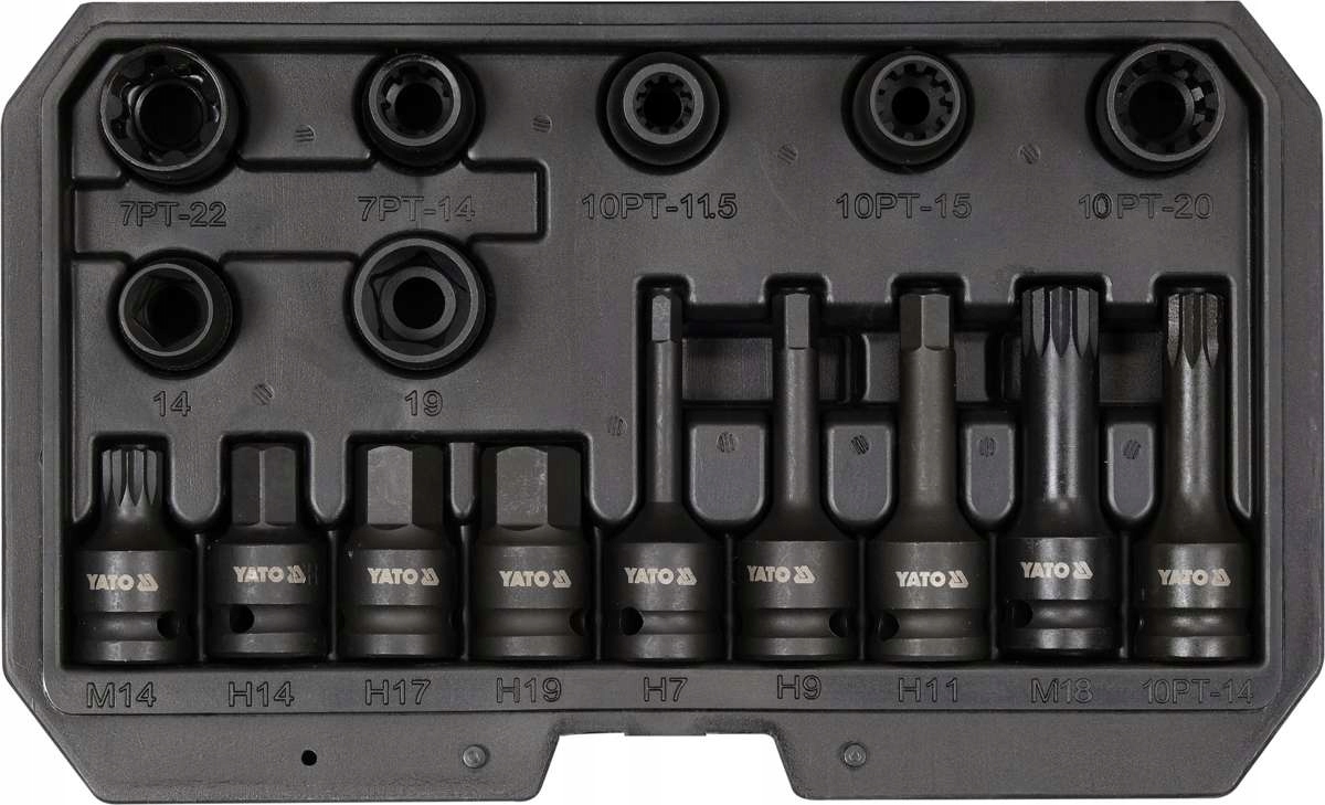 вміст комплекту CD.:<| b> шестигранний ключ 1/2" x6 (14 мм, 17 мм, 19 мм (L=45 мм), 7 мм, 9 мм, 11 мм (L=78 мм))|сплайн-ключ 1/2" X2 (M14 (L=45 мм), M18 (L=78 мм))/