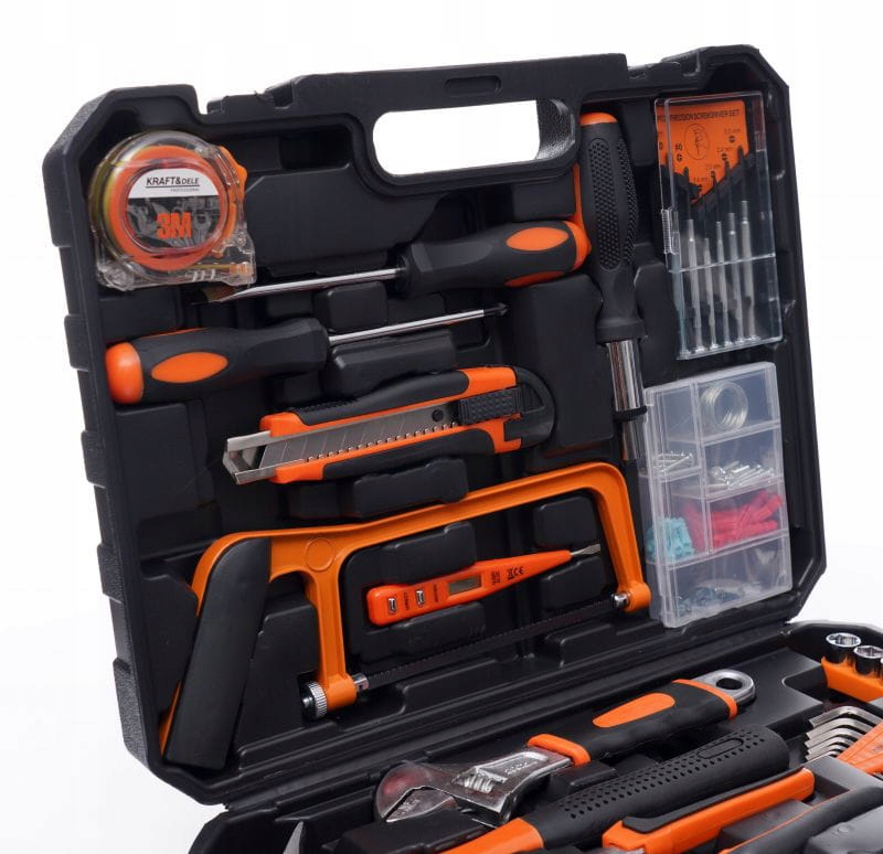 Надзвичайно великий набір інструментів від бренду Kraft&Dele з символом KD10839. Інструменти характеризуються надійною обробкою, міцними матеріалами та зручною валізою, у якій кожен інструмент має своє місце.