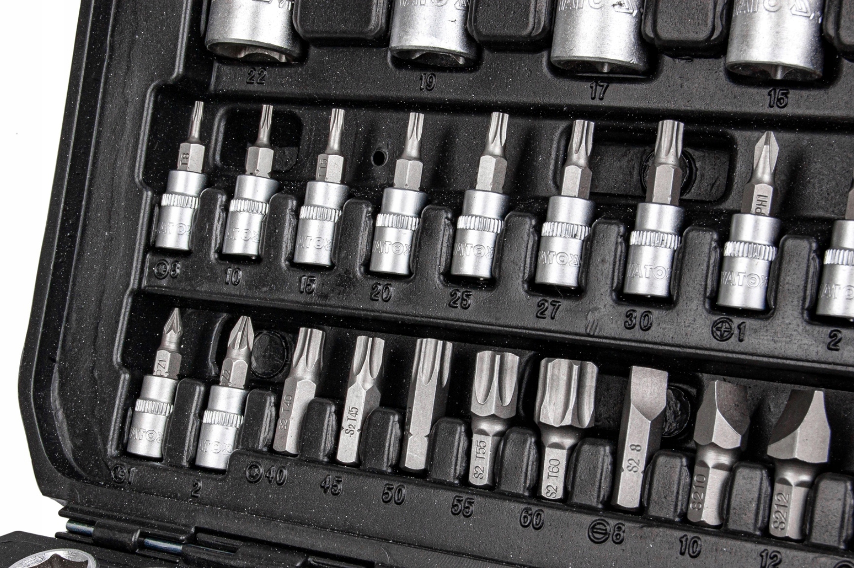 Професійний набір інструментів, розроблений для задоволення потреб спеціалізованих автомобільних і механічних служб. Торцеві ключі та торцевий привід виготовлені з міцної хромованадієвої інструментальної сталі CrV 50BV3. Гнізда були виготовлені методом штампування, а перед процесом загартування їх відкалібрували за допомогою точних калібрів і контрольних пристроїв. Головки оснащені системою AS-Drive, що збільшує максимальний крутний момент на 25%, з повним захистом країв гайки, головки з двоколірним покриттям поверхні. У комплект також входять насадки з твердої сталі S2. Набір дозволяє виконувати роботи, що вимагають дуже високих навантажень і точності, а також дозволяє виконувати багато сервісних робіт, пов'язаних з відгвинчуванням і закручуванням різьбових з'єднань різних номінальних розмірів