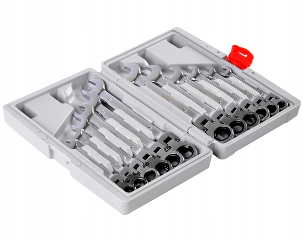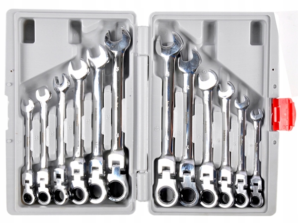 Набір ключів ріжкових комбінованих з тріскачкою (72 зуба), 8-19 мм, виготовлені з міцної хромованадієвої сталі (CrV).