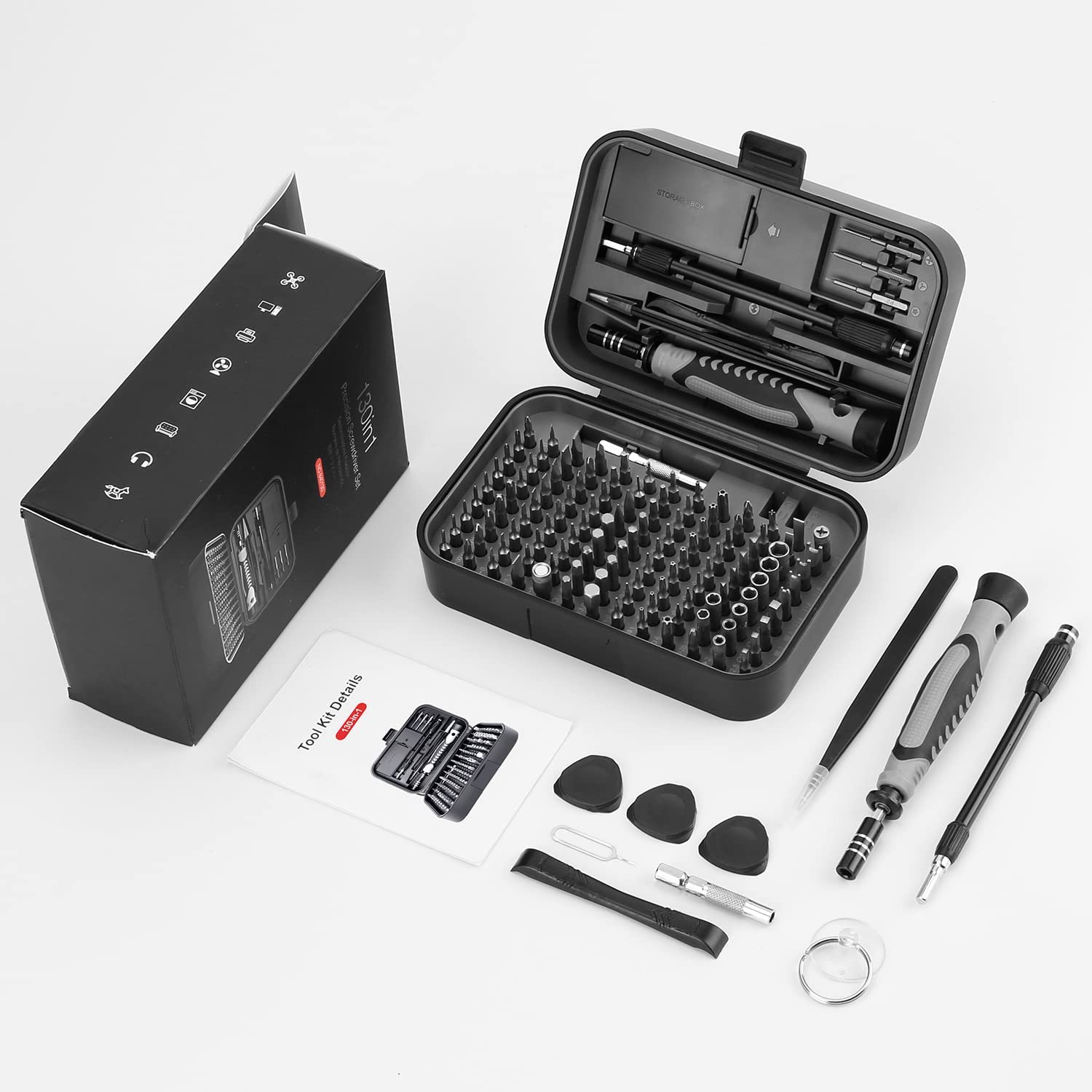 • цей професійний набір викруток поставляється з портативним двостороннім ящиком для інструментів (один для прецизійних викруток і Біт, інший для інструментів для ремонту), який полегшує транспортування, безпечне зберігання і швидку організацію.