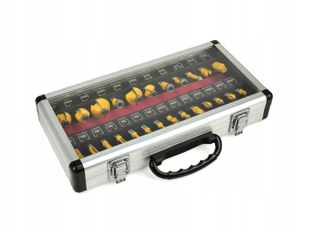 набір з 25 фасонних різців для дерева для точної обробки матеріалу. Леза зі швидкорізальної сталі HSS дозволяють використовувати фрези для обробки твердої деревини, ДСП, МДФ та інших деревних матеріалів. Використовувані підшипники знижують опір коченню, тому фрези ідеально підходять для формування круглих матеріалів. Все це було поміщено в практичний дерев'яний чемодан, де кожен різак має своє підписане місце.е>