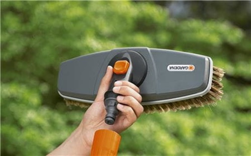 комплект для миття автомобілів Gardena містить всі необхідні елементи для дбайливого і ефективного догляду за автомобілями. У комплект входять щітка для миття, проточний Вал і шампунь для миття автомобіля. кисть можна поступово повертати кожні 30°. Зручна проточна щітка для миття шириною 27 см є гнучкою у використанні.