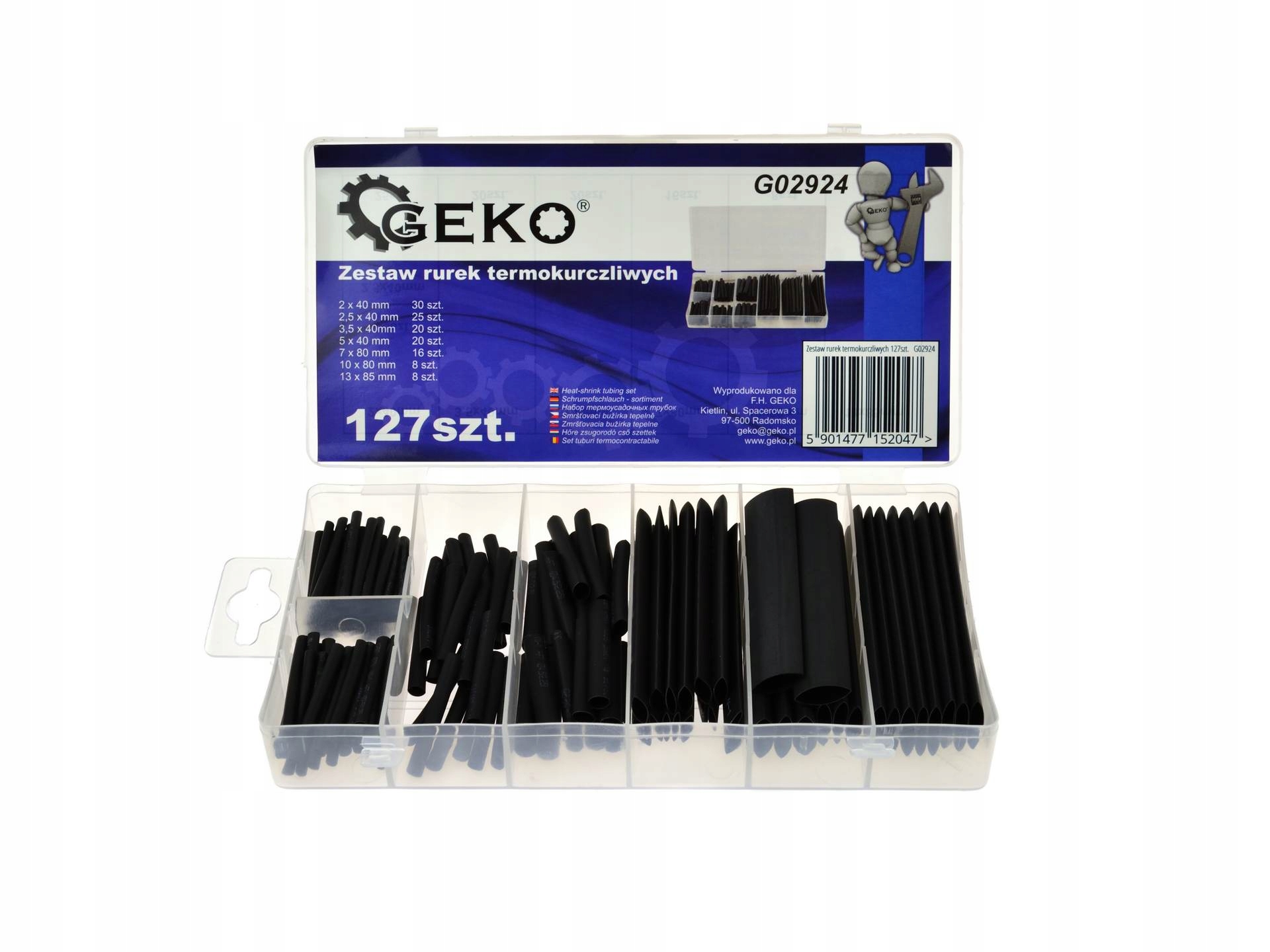 В комплект входить 127 штук термоусадочних трубок в 7 популярних розмірів.< /B> вони зберігаються в практичному органайзері, який значно полегшить пошуквідповідного розміру