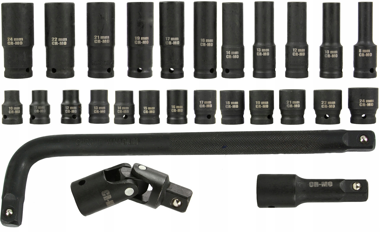 набір високоякісних торцевих ключів 1/2 " 27 pcs BJC ® ️ Ковпачки виготовлені з високоякісної сталі Повний комплект, що складається з насадок, подовжувачів, адаптерів Точність виготовлення насадок гарантує високу якість і довговічність під час використання Рекомендується для будь-якої технічної галузі. Ідеально підходить для: автосервіс вулканізації та послуг DIY