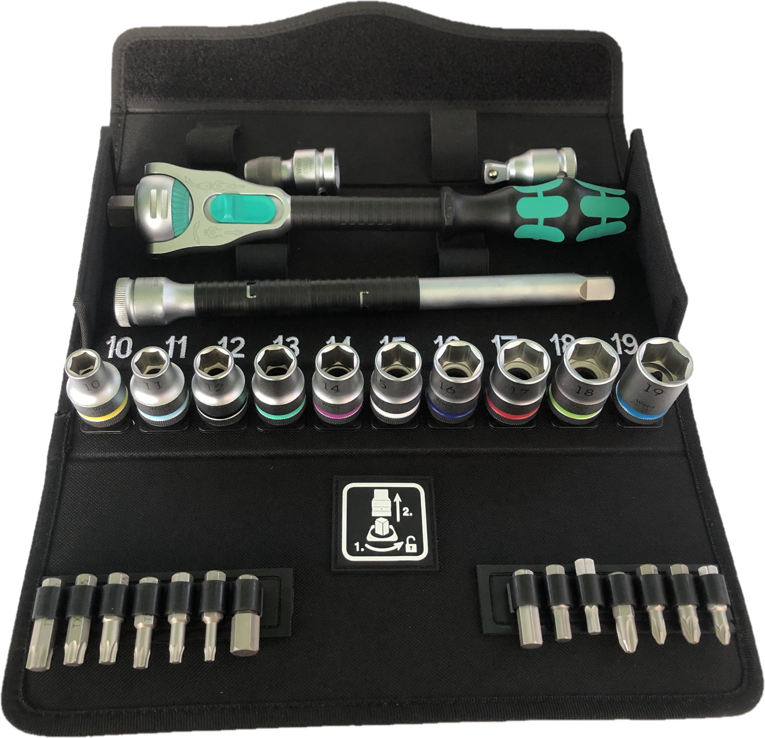 - з системою пошуку інструментів Wera "Take it easy": система кольорового маркування інструментів за розміром