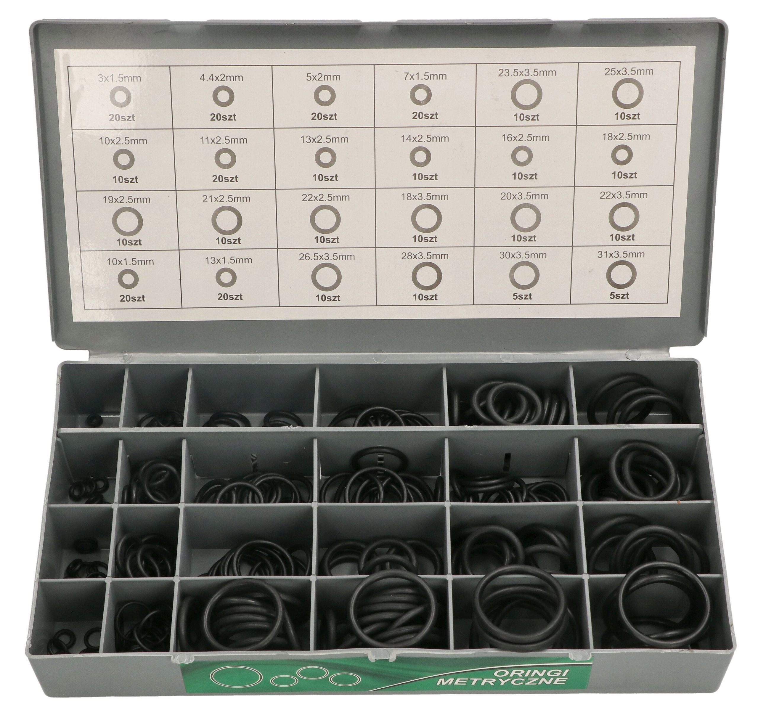 набір відрізняється довговічністю і надзвичайно тривалим терміном служби. Компоненти виготовлені з високоякісного каучукового матеріалу. Продукт надзвичайно міцний і стійкий до багатьох речовин, таким як: жири, мастила, бутан, пропан, силіконові, гідравлічні і мінеральні масла, вода до 80°C і розбавлені кислоти.