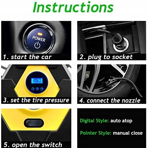 швидка швидкодіюча накачування і подача в шиномонтаж Автоматичний розпилювач повітря в шинах МНС швидкодіюча накачування автомобільних шин. Все, що вам потрібно зробити, це підключити його до електричної розетки 12 В вашого автомобіля і прикріпити до шини, яку ви хочете підірвати. Все, що вам потрібно зробити, це перевантажити трансформатор, і автомобільний повітряний компресор виконає роботу за вас. Автоматичний датчик автомобільний повітряний насос використовує прості та ефективні технології. Ви можете встановити задане натискання, а коли шина насоса осідає, задане натискання на повітряний розпилювач автоматично відключається. Вам не потрібно турбуватися про надування або низький тиск у шинах. вони підкрели вашу безпеку на час Кей. Світлодіодний світло і 13 футів Dugi діапазон наш електричний повітряний насос оснащений Світлодіодний світло, який допоможе вам накачати шини в нічний час. Крім того, кабель живлення з dugoci 13 м достатньо для того, щоб від atwoci sign до передньої і задньої шин. Dugi кабель усуває необхідність від'єднання його в будь-який час, коли ви відчуваєте si від однієї шини на nastpn. Багатофункціональні додаткові форсунки шнура з 13-метровим насосом дозволяють дістатися до всіх шин автомобіля велосипедного двигуна ATV компактного або червоного розміру седана позашляховика і т. д. Крім того, в комплект входить спортивна муфта і адаптери для надувних виробів, які ідеально підходять для надувних матраців та інших надувних речей. Кращий obsuga зв'яжіться з нами якомога швидше якщо у вас виникнуть які-небудь проблеми.е>