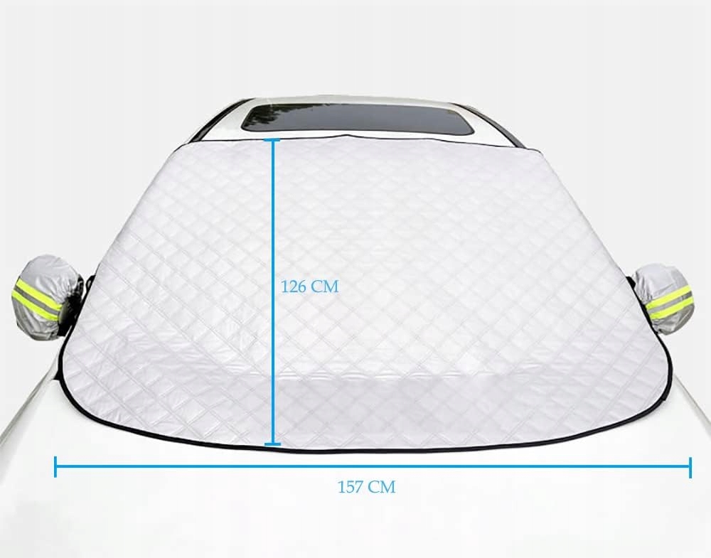 Посилений 4-шаровий матеріал. Наша накладка на лобове скло автомобіля складається з 4 шарів: 1. Один шар алюмінієвої фольги на PE 2. Шар бавовни 3. Шар бавовни. 4. Шар флізеліну. Низ дуже м'який і ніжний завдяки використанню текстильних елементів. Надійно захищає скло і фарбу автомобіля від подряпин і пошкоджень. Козирок від морозу на лобовому склі з магнітом Завдяки 9 краєвим магнітам і 2 еластичним стрічкам, які прикріплюються до дзеркал заднього виду, козирок від морозу на лобовому склі може залишатися на місці навіть під час сильного вітру, і його не здує. Щоб захистити ваше лобове скло від подряпин і тріщин, це покриття має бути вашою найдешевшою інвестицією. Захист від снігу та льоду. Чесно кажучи, автоскло – простий, але корисний продукт для вашого автомобіля в літній та зимовий період року, він може захистити лобове скло та дзеркала вашого автомобіля від дощу, снігу, льоду, морозу, листя. і т. д. Особливо в спекотні дні його можна використовувати як сонцезахисний навіс на лобовому склі. Можна використовувати цілий рік влітку як сонцезахисний засіб, забезпечуючи захист від сонця та високих температур. Взимку авточохол захищає від морозу та замерзання скла. Запобігайте проникненню пилу та морозу навесні. Восени приберіть листя, що опадає. Це може ефективно покращити термін служби склоочисників і вітрового скла. Легке встановлення. Простий у використанні та транспортуванні, інструменти для складання не потрібні. Бічна звукова стінка монтується таким чином, щоб вона не впала. Після дощу та снігу просто зніміть кришку лобового скла. Сніг іній лід або листя видаляють. Потім їх потрібно скласти і розмістити в будь-якому місці.