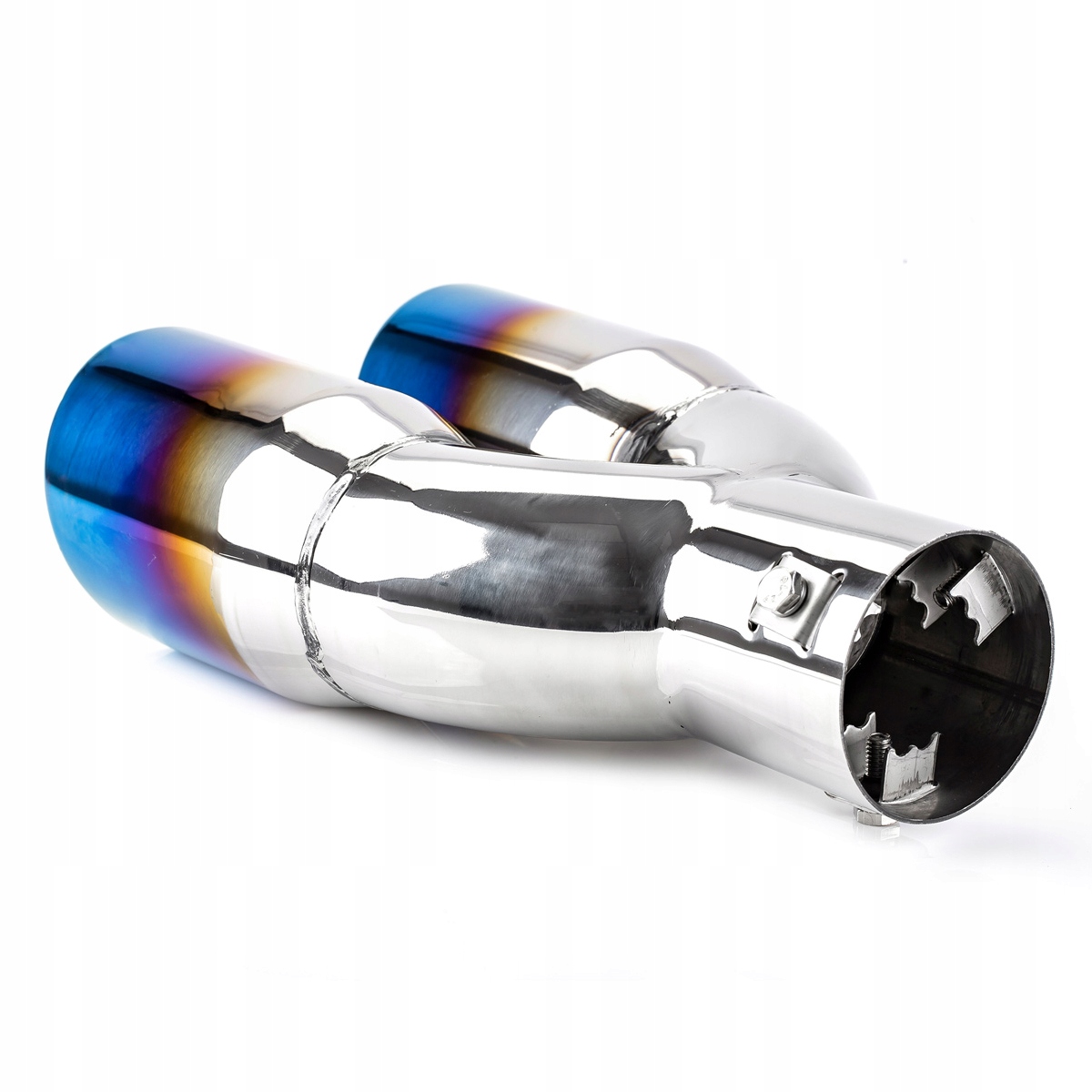виготовлений з високоякісної кислотостійкої нержавіючої сталі універсальний хромований подвійний наконечник глушника з синьою обробкою ("випал").
