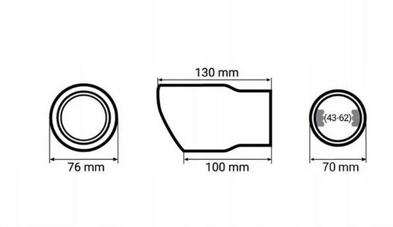 Наконечник глушника з нержавіючої сталі, пофарбований у чорний колір. Стійкий до погодних умов і високих температур. Надає цікавий, спортивний вигляд. Легка і швидка установка шляхом затягування хомутів (після проїзду 500-1000 км перевірте затягування гвинтів). Торець також можна приварити.