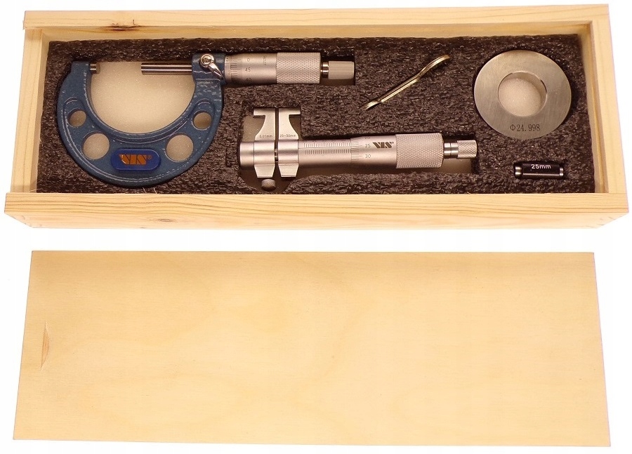 мікрометр має чітку градуювання, розташовану на матовій поверхні, і прецизійні щелепи з полірованими поверхнями з карбіду вольфраму. Він також поставляється з фіксуючим гвинтом.