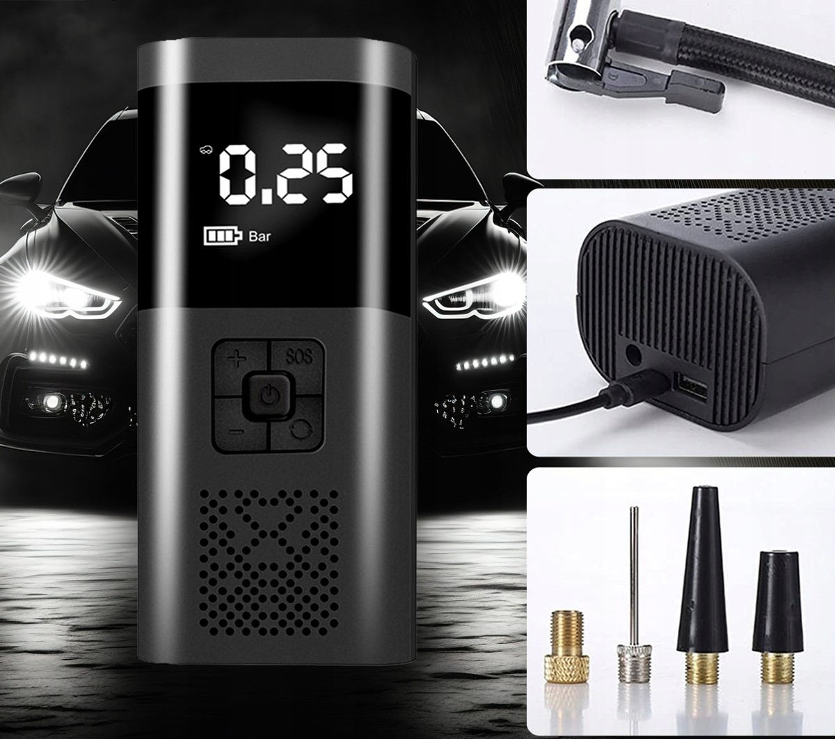 Автомобіль : Ідеально підходить для накачування автомобільних шин у разі раптового падіння тиску.