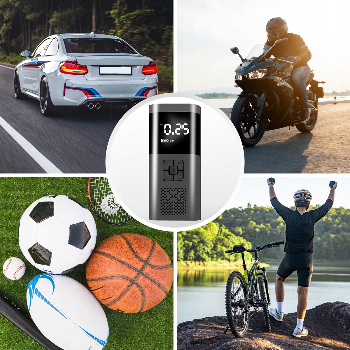БАГАТОФУНКЦІОНАЛЬНІСТЬ : можна використовувати не лише для накачування автомобільних та велосипедних шин, а й для інших речей, таких як м’ячі та матраци.