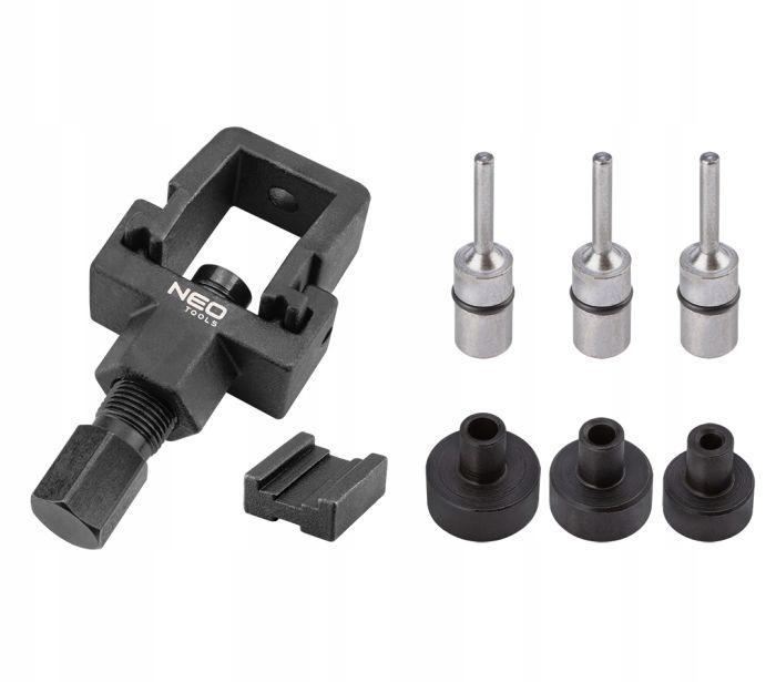 Набір інструментів для розриву та зриву ланцюга NEO універсальний набір, призначений як для зриву, так і для зриву ланцюгів мотоциклів HEAVY DUTY в розміри: 520, 525, 530 і 532 . Він підійде для приводних ланцюгів і ГРМ . Набір пропонується в практичній валізі з рельєфним місцем для окремих елементів.