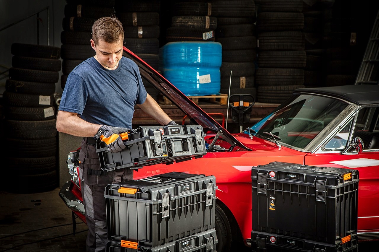 ✅система NEO (арт. 84-259) являє собою трьохмодульну стійку конструкцію на платформі з колесами, використовувану для транспортування і зберігання будівельних інструментів.
