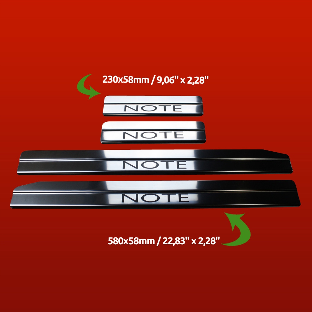 у carmodstore ми розуміємо, що ваш автомобіль — це більше, ніж просто засіб пересування; це продовження вашої особистості та стилю. покращте естетику салону вашого NISSAN NOTE MK1 за допомогою наших високоякісних накладок на пороги NISSAN NOTE MK1. Виготовлені з високоякісної глянцевої нержавіючої сталі 304 з чорним написом, ці дверні пороги не тільки захищають ваш автомобіль, але й додають нотку розкоші вашому інтер’єру.