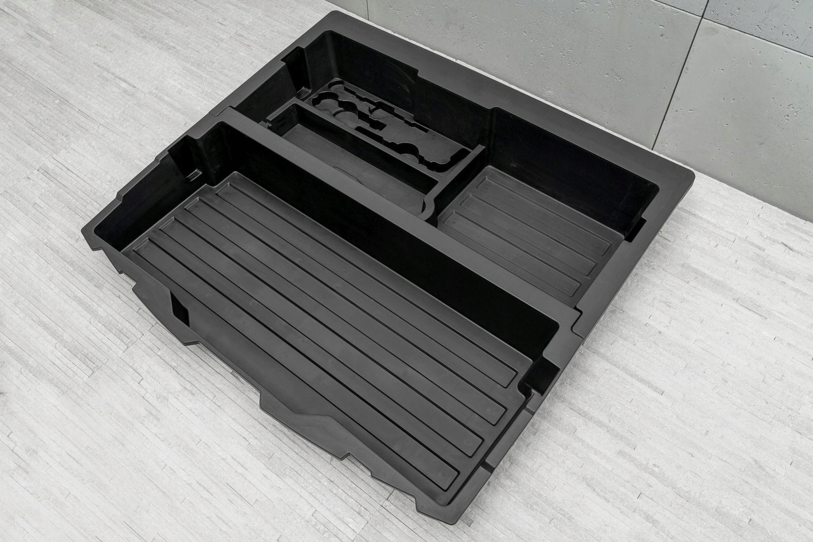 пресований пластиковий картридж дозволяє перетворити відсік запасного колеса в практичний органайзер. Картридж дозволяє зручно зберігати необхідні інструменти та аксесуари. е>