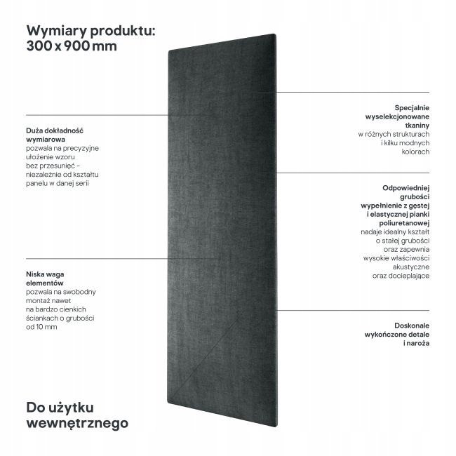 стінова панель м'яка Stegu Mollis прямокутник 90 x 30 см антрацит легко монтується. З кріпленням ефектною облицювання ви впораєтеся самостійно. Ви можете використовувати клей, але липучки також підійдуть. Таке рішення дозволить вам в будь-який момент переставити. Панель марки Stegu була виготовлена з дерев'яної плити, губки та тканини. Матеріал є гідрофобним, тому він відштовхує бруд і полегшує їх видалення. Стінова панель, оббита Stegu Mollis прямокутник антрациту, буде використовуватися в оформленні спальні. З виробу ви зробите цікаве узголів'я, елементи якого розташуйте за власним задумом. Панелі серії Mollis забезпечують відмінну звукоізоляцію. Вони доповнять скандинавський або сучасний інтер'єр. Також ознайомтеся з іншими колірними варіантами м'яких панелей.е>