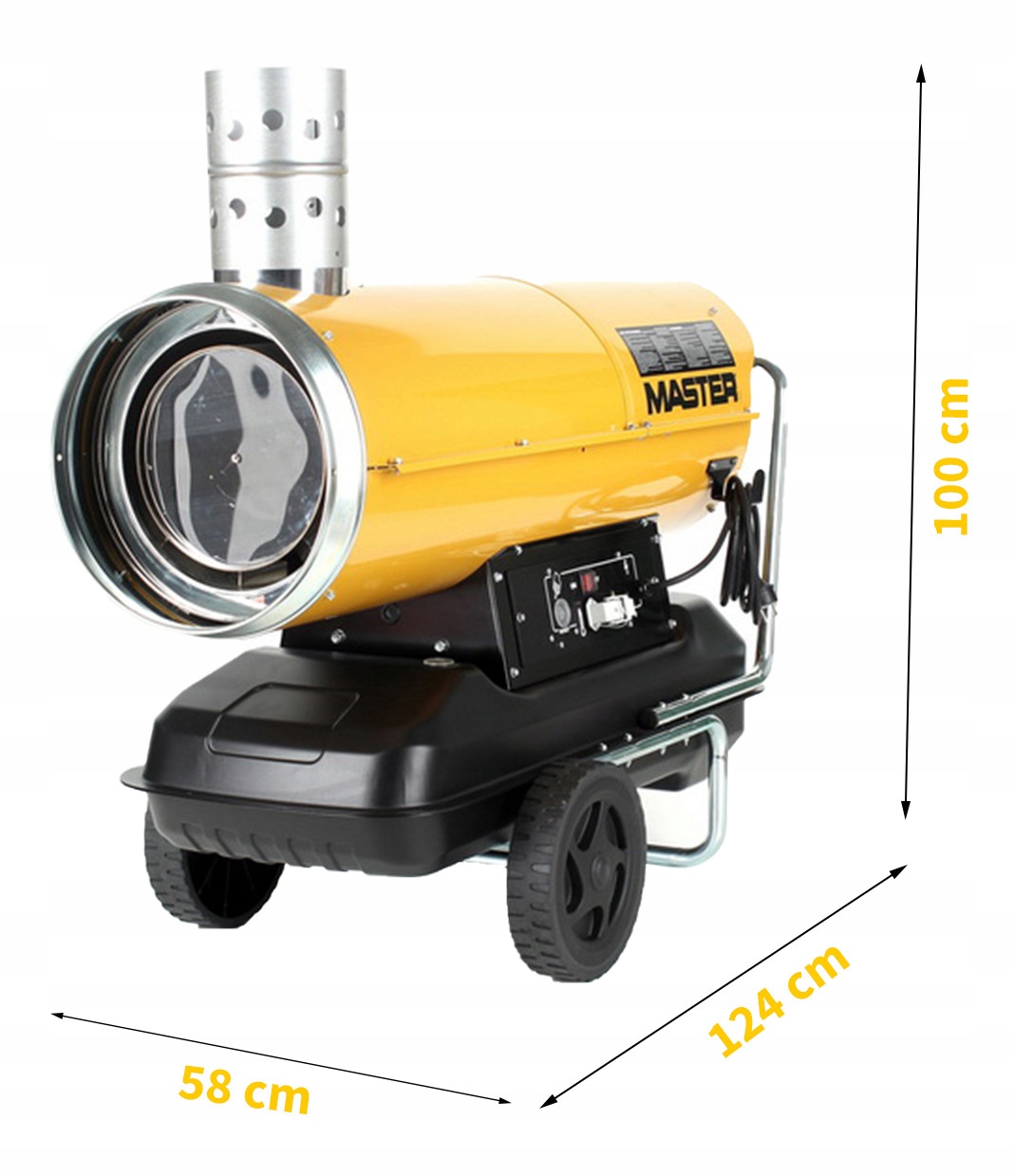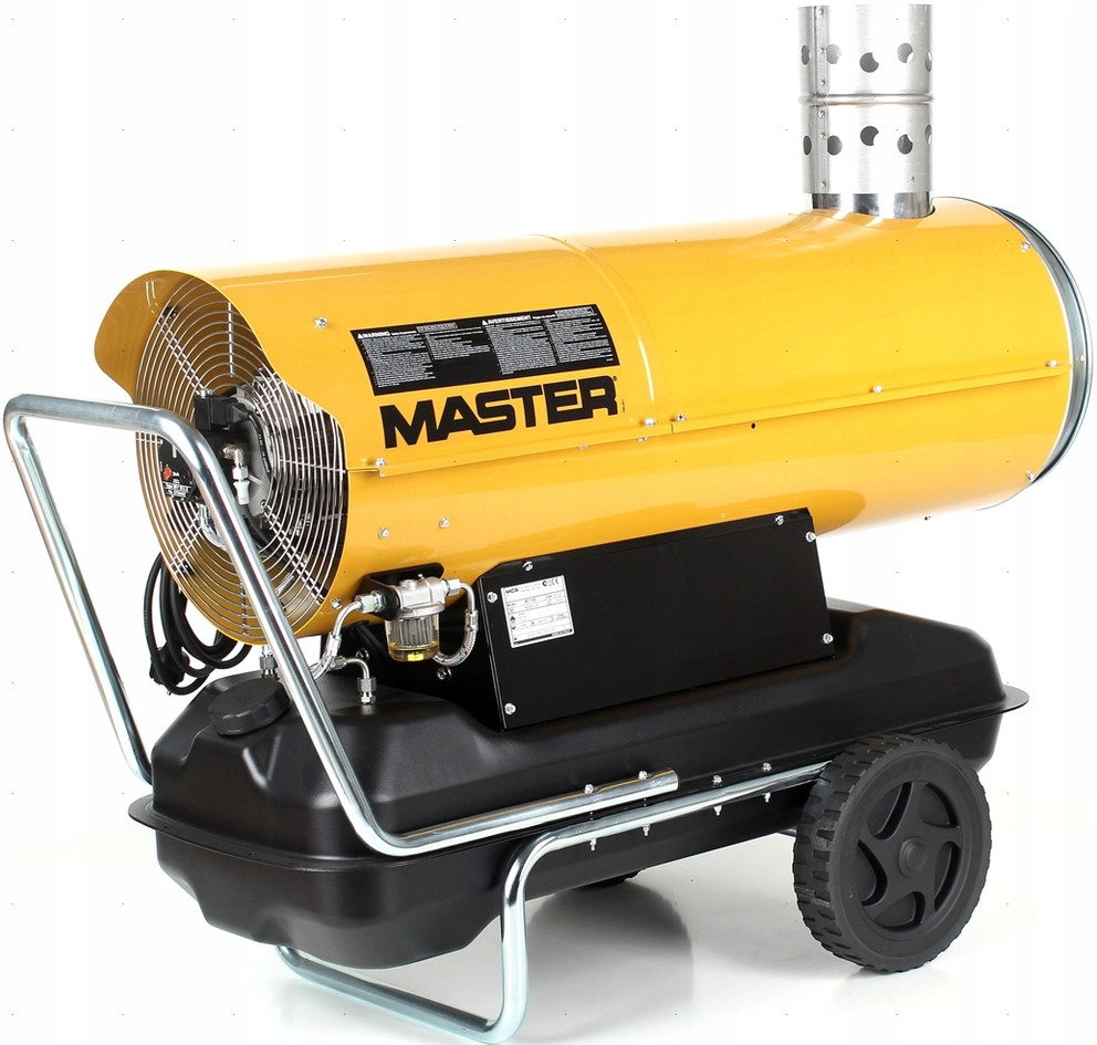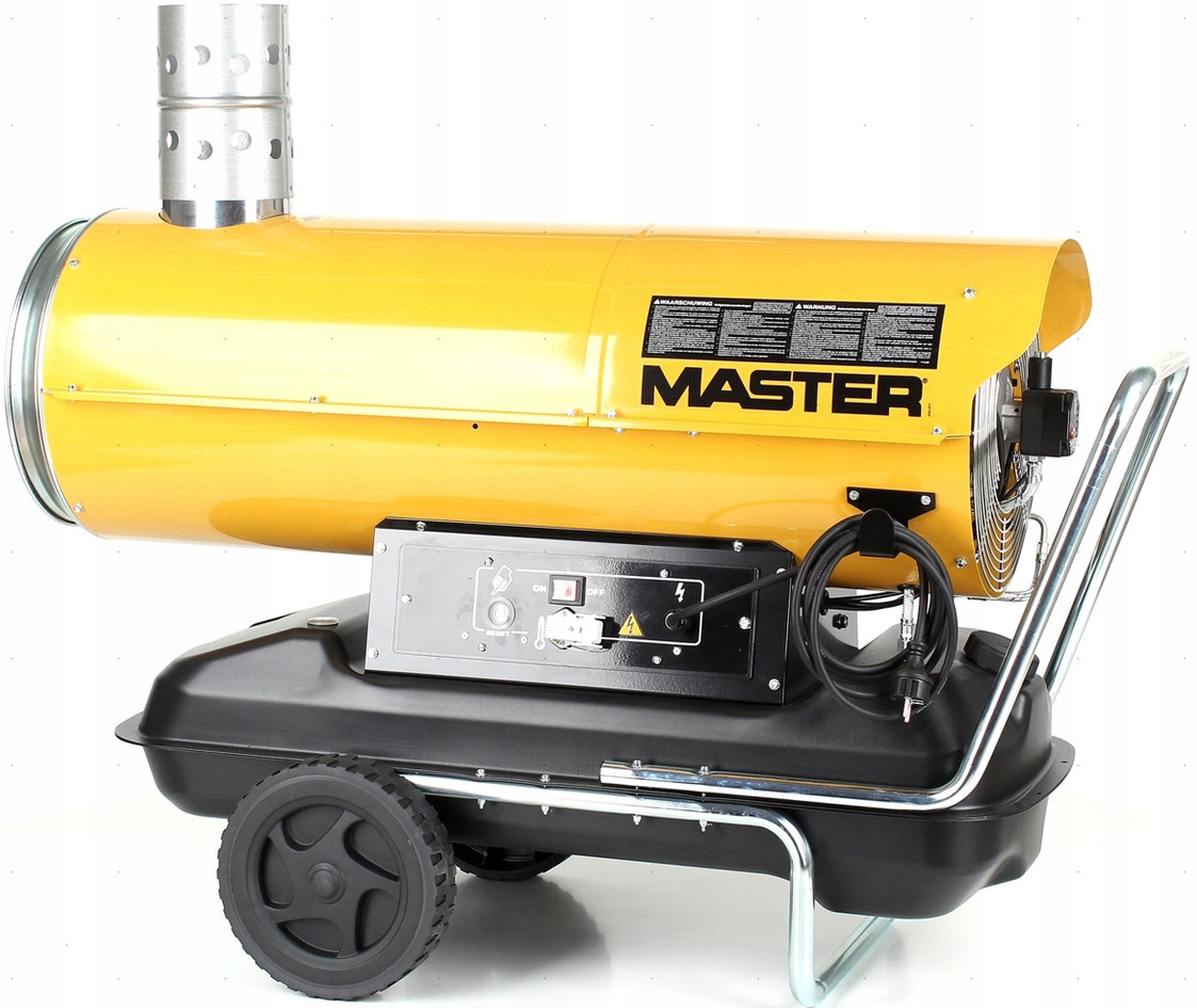 MASTER BV110E < /B > - це портативний, професійний і повністю автоматичний масляний обігрівач з відведенням вихлопних газів. Камера згоряння виготовлена з нержавіючої сталі. Корпус нагрівача ізольований, тому він не нагрівається під час використання. Нагрівачі оснащені колесами, підставками і поручнями для полегшення їх транспортування. Всі пристрої мають вбудований масляний бак. Живлення для вентилятора і автоматики-230В.