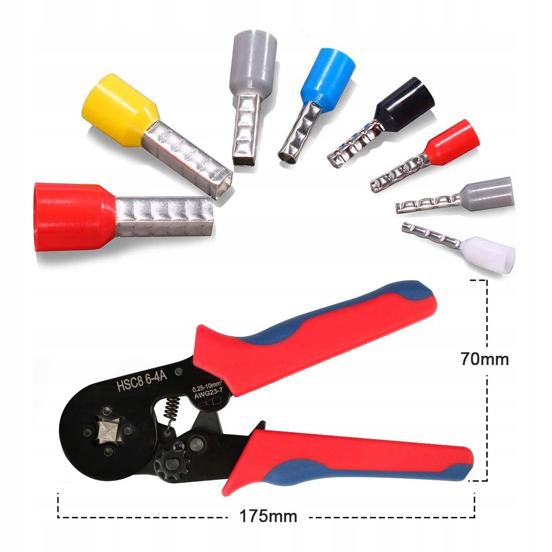 ✅включає 1 * обтискні плоскогубці + 1250 * відповідні втулки. 1250 наконечників найбільш поширених розмірів: 0,25-10,00 мм2.е>