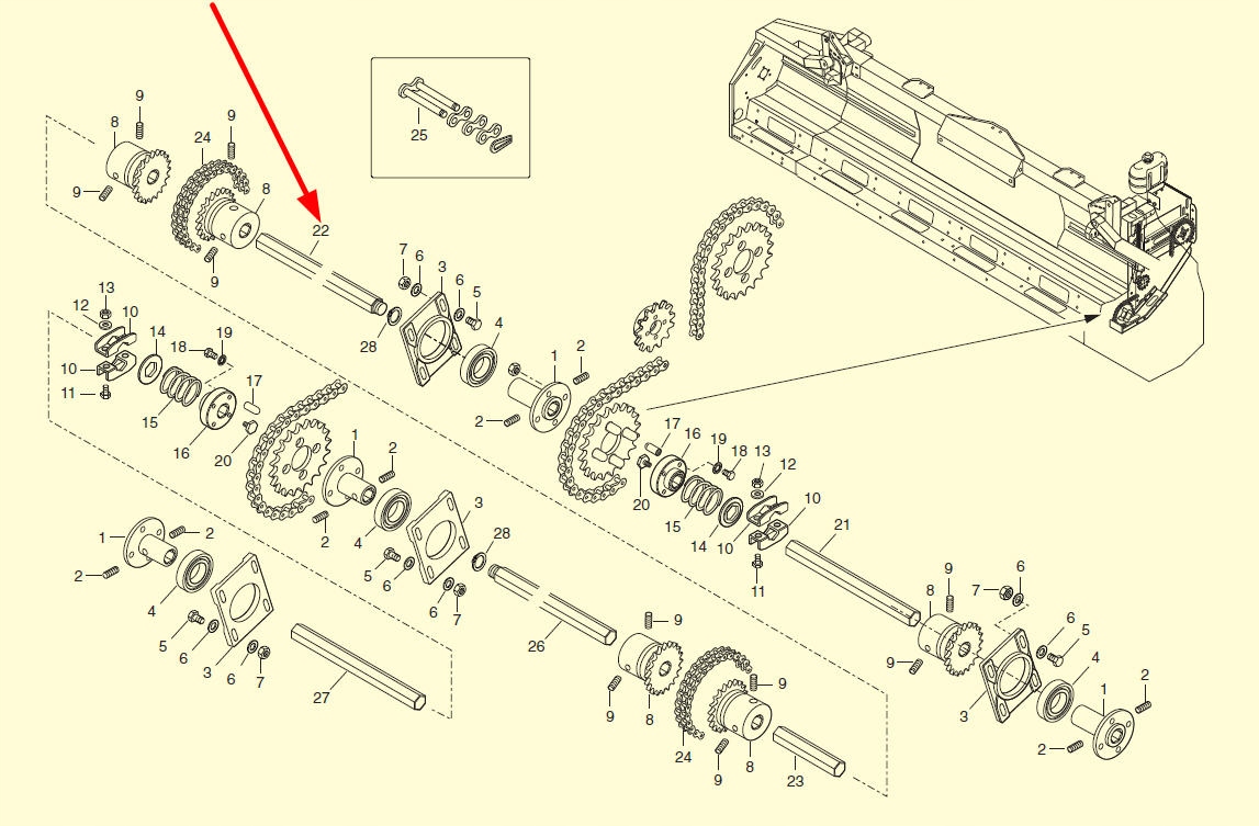 оригінальний 6-кутовий вал довжиною L - 880 мм з каталожним номером DR6225, який використовується в кукурудзяних насадках марки Olimac Drago.е>