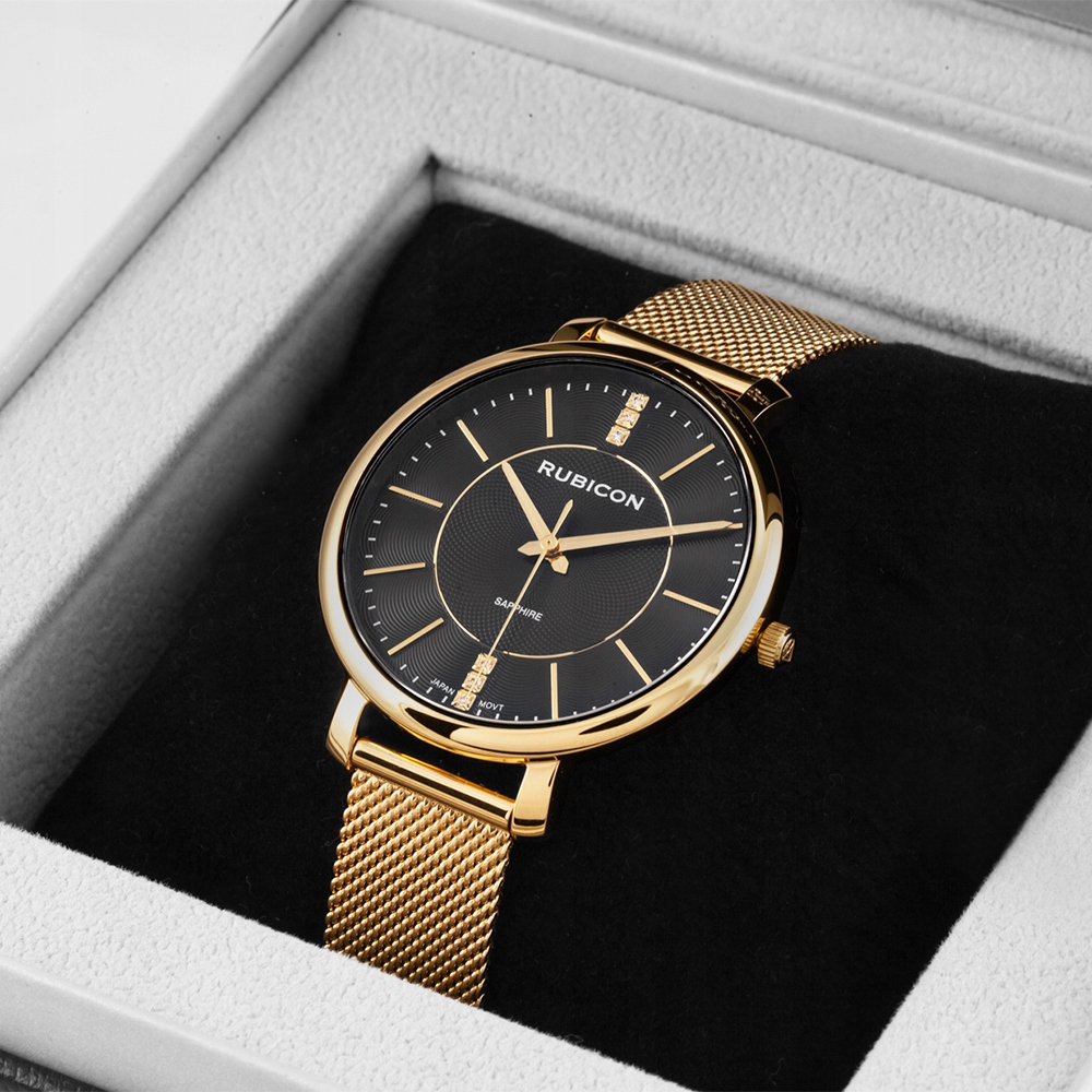 На наступному малюнку показаний зразок гравіювання, виконаної на годиннику марки:Rubicon . Годинники, показані на цій фотографії, не продаються на аукціоні.е>