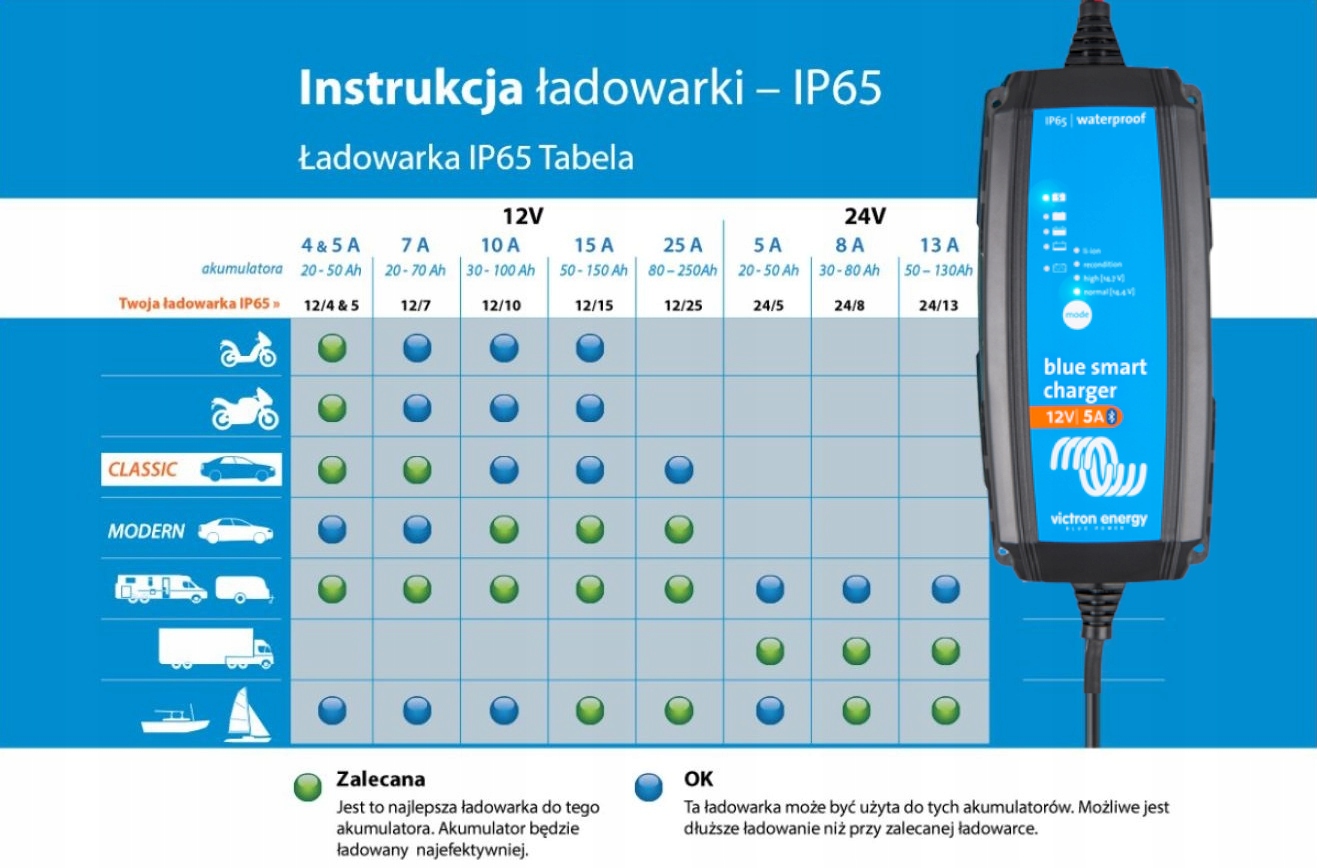 зарядний пристрій Blue Smart IP65 < /b > - Це новий професійний зарядний пристрій з вбудованим Bluetooth. Зарядний пристрій Blue Smart IP65 можна використовувати для обладнання майстерні та автотранспортних засобів, таких як класичні автомобілі, Мотоцикли, будинки на колесах, а також для човнів.