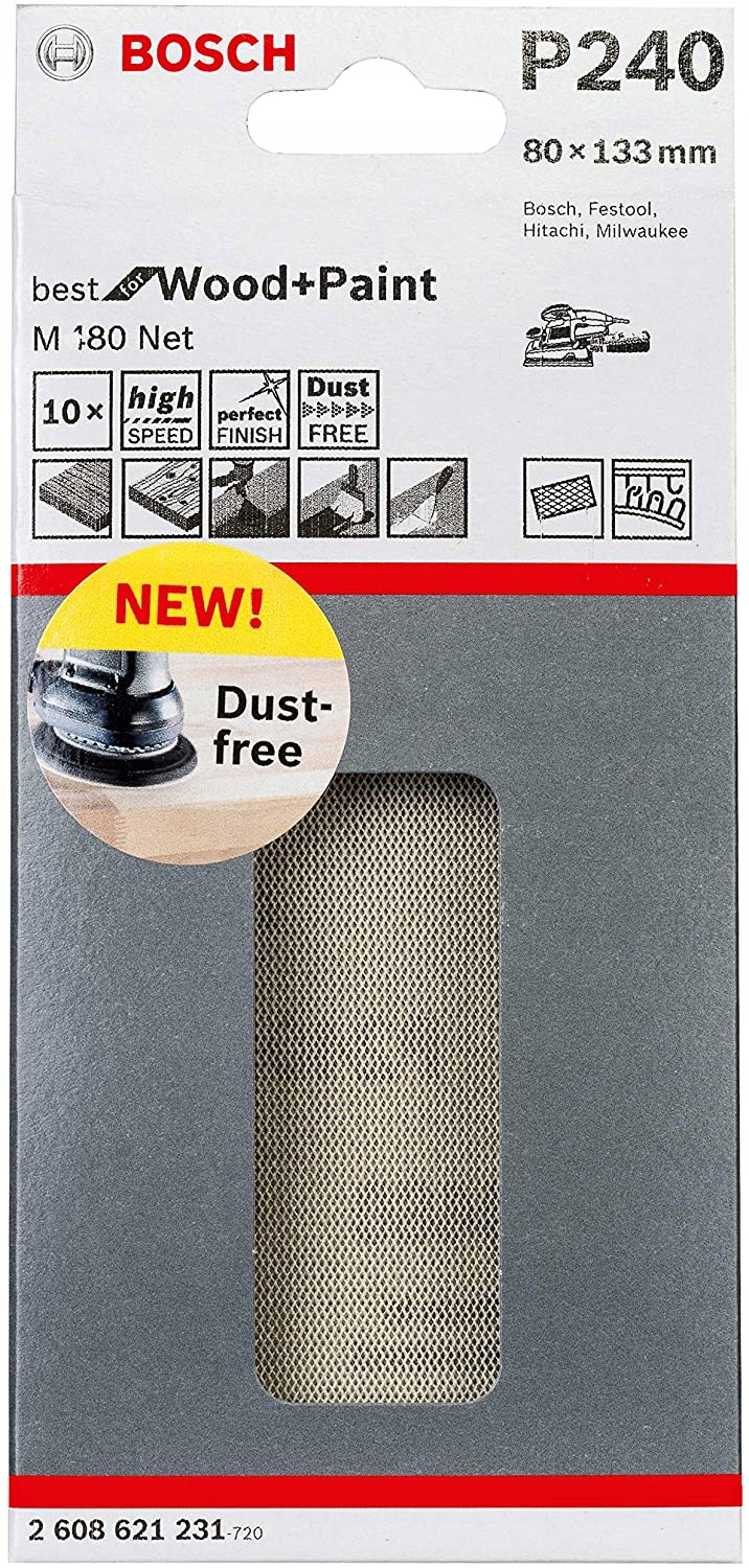 абразивна сітка M480 Best For Wood and Paint дозволяє шліфувати і матувати деревину і пофарбовані поверхні практично без пилу. Сітчаста структура дозволяє повністю видаляти пил з поверхні під час обробки. Крім того, його конструкція запобігає засмічення і забезпечує чисту поверхню без накопичення пилу з оброблюваного матеріалу. Абразивна сітка M480 Best for Wood and Paint виготовлена з трикотажної тканини, що забезпечує стабільну роботу і оптимальні шліфувальні властивості. Виріб призначений для ретельного шліфування м'якої і твердої деревини, лаку, будівельного гіпсу, а також деревини, що містить смолу або масло. Ідеально підходить для шліфування покриттів і забруднень, шліфування між нанесенням послідовних шарів лаку і матування грунтовок.