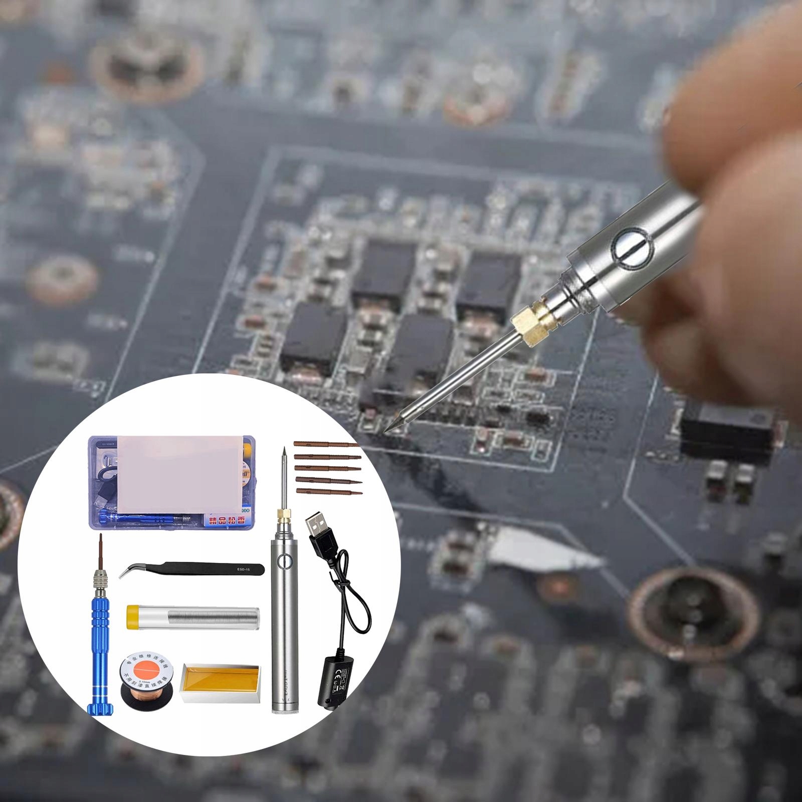 повні комплекти: в комплекті пінцет, Олов'яний дріт, мідний дріт, втулка паяльного наконечника, біти Викрутки, каніфоль і чохол для зберігання.е>