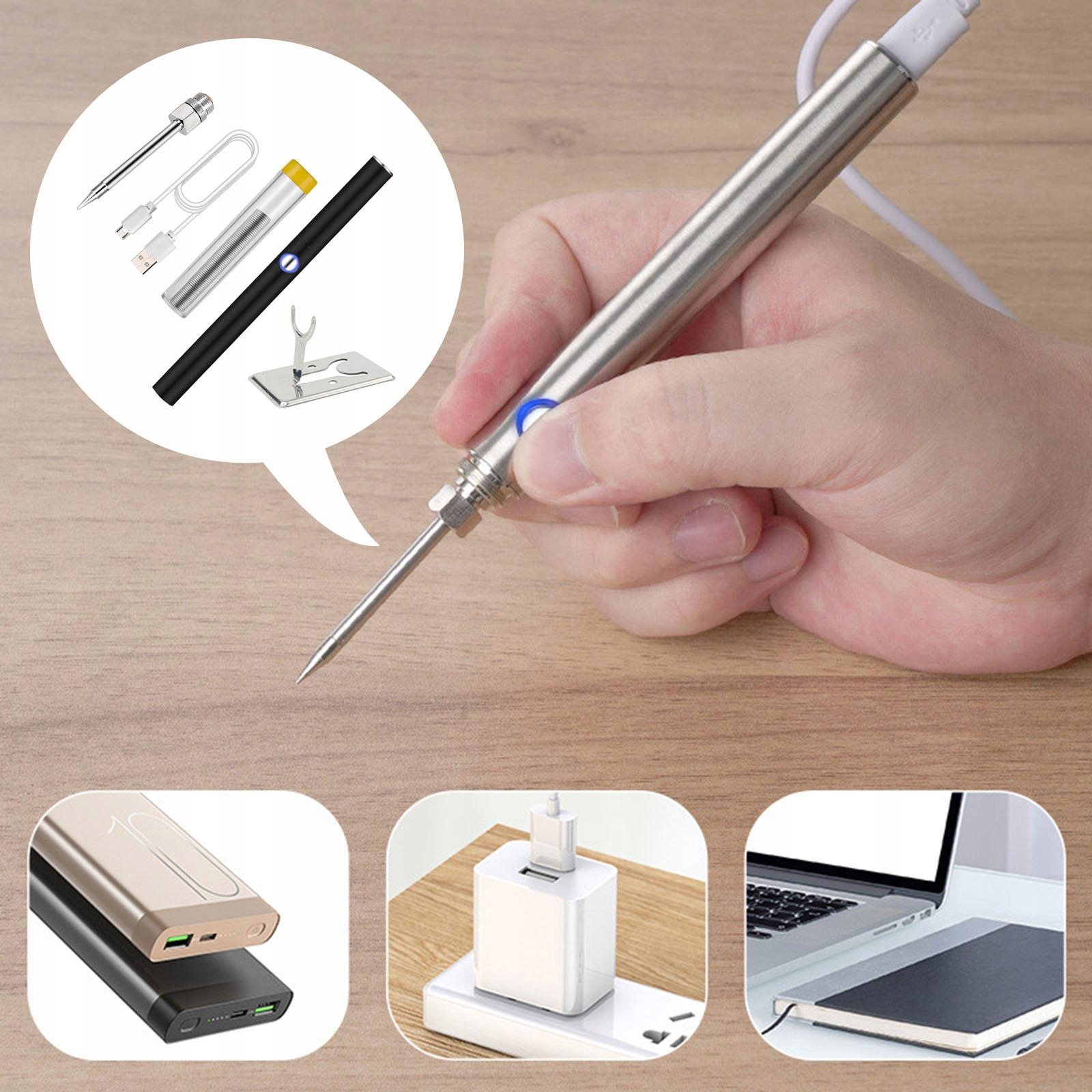 USB-Акумулятор: його можна легко використовувати, просто вставивши його за допомогою USB-кабелю для передачі даних, і він пропонує різні методи портативний паяльник: інтерфейс паяльника може підключити паяльник і зарядити швидка теплопередача і нагрів кнопка живлення має підказки, натисніть кнопку живлення, світло загориться під час використання індикатор кнопки блимає, вказуючи на низький рівень заряду батареї необхідно заряджати