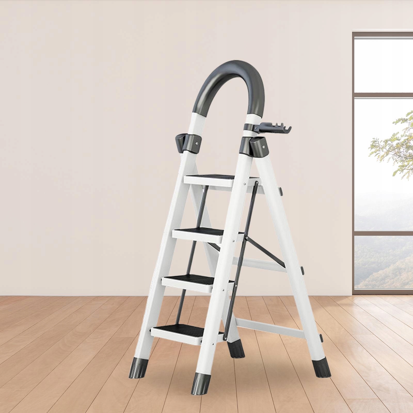 сталеві сходи складні протиковзкі сходи для кухні на відкритому повітрі для дорослих у білому кольорі