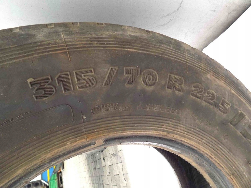 шина з направляючою осі, б / у, справна, зенкована. Виробник / модель: баклан розмір: 315/70 22,5 " Індекс швидкості: l Індекс вантажопідйомності: 154/150 дата виготовлення: 2710 висота протектора: 6 мм