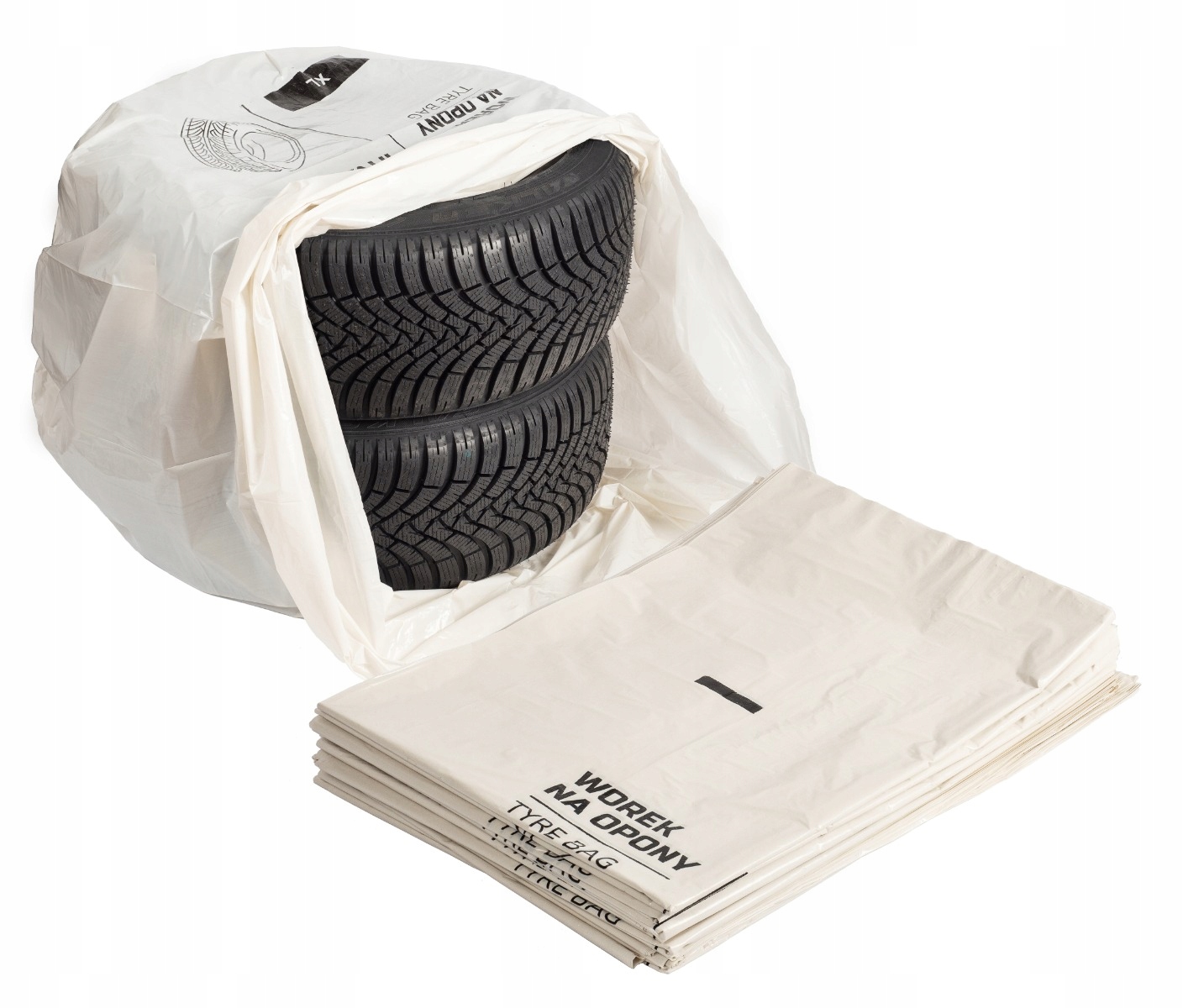 Білі пластикові пакети товщиною до 40 мікрон і розміром до 1200 x 1200 мм захищають шини від погодних умов під час зберігання.