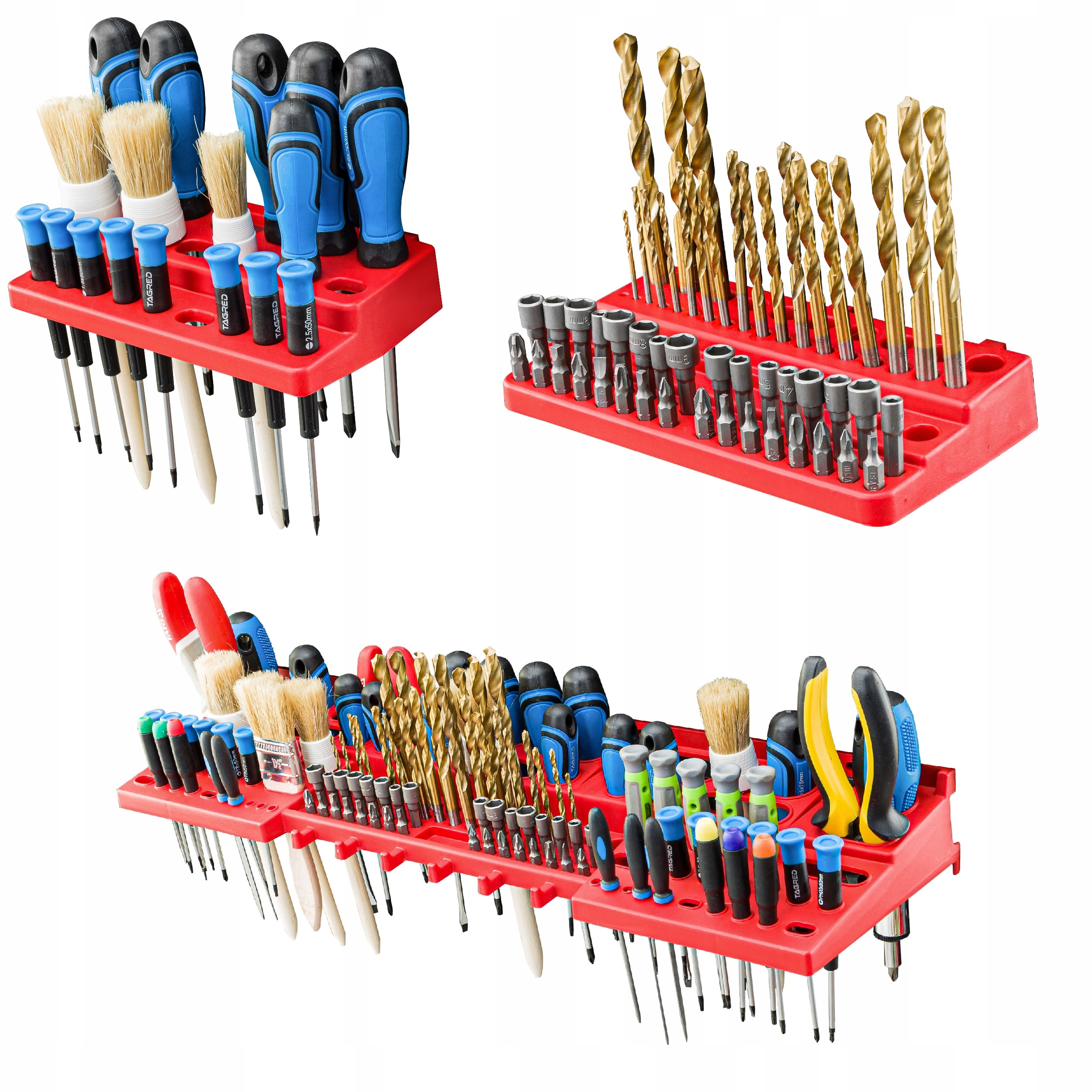 одним з найбільш важливих елементів набору є власники і полиці інструментів , прикріплені до дошки горизонтально, дозволяють чітко розташувати всі необхідні інструменти. Невикористаний простір над робочою стільницею-ідеальне місце для інструментальної дошки, що забезпечує доступ до вашого порогу. Представлений набір включає в себе тримачі і полиці для інструментів у відповідності зі специфікаціями: