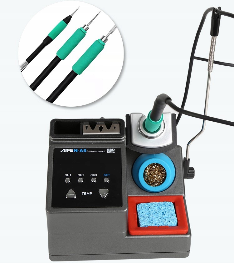 Завдяки можливості вибору з широкого діапазону наконечників, Aifen A9 Паяльна станція добре працюватиме як у хобі, так і в професії. Завдяки можливості установки маленьких і точних жала C210, паяльник ідеально підходить для обслуговування материнських плат.