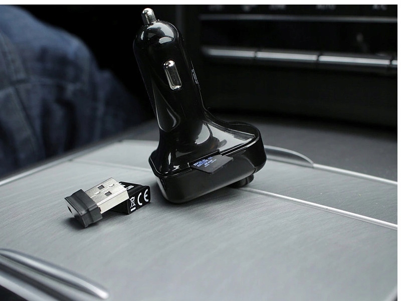 FM-передавач має два вбудованих порти USB для зарядки і відтворення музики з USB-носія.е>