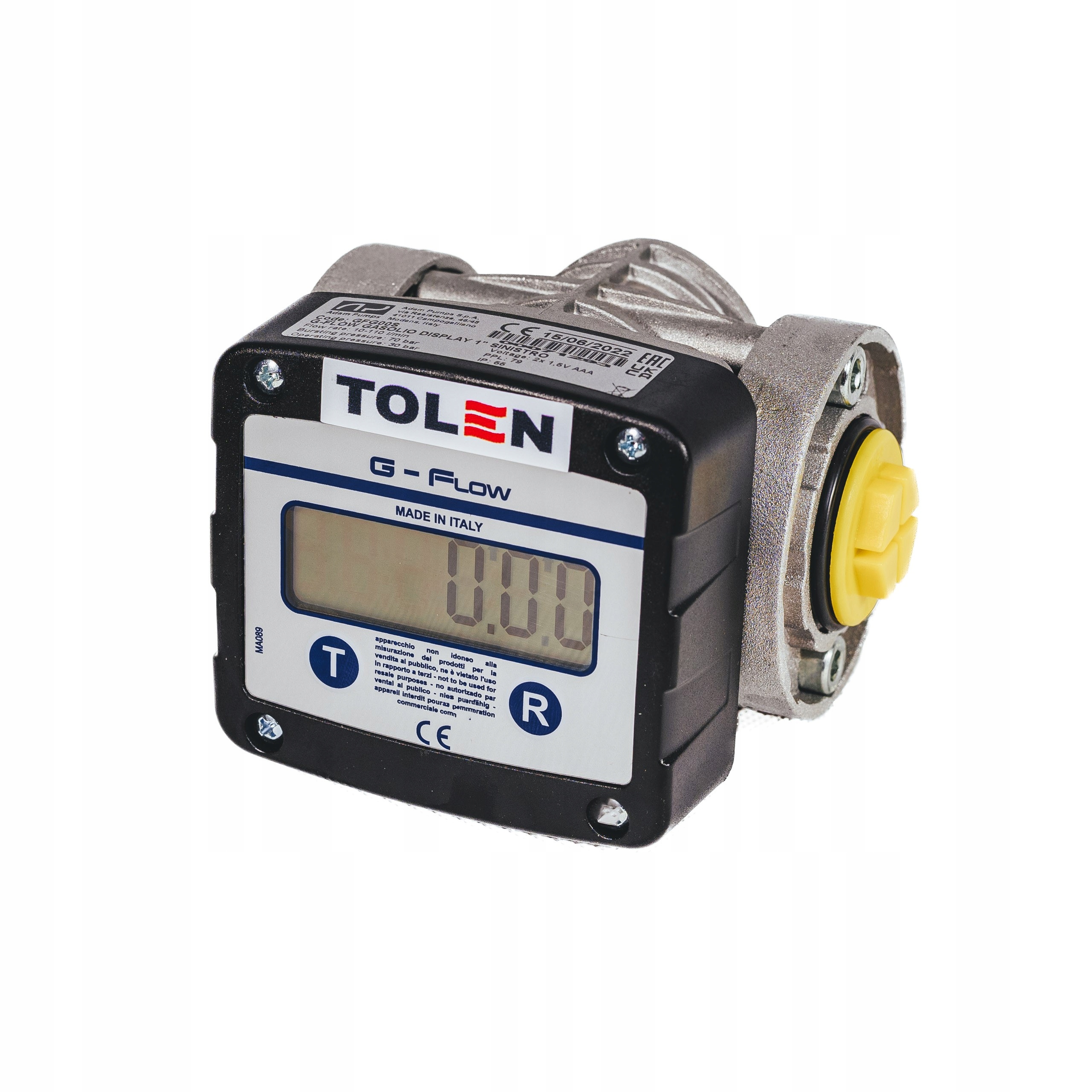 Італійський лічильник нафти Adam Pumps G-flow, з високою точністю вимірювання, системою пам’яті для останніх 5 заправок, дисплеєм із підсвічуванням, загальним лічильником, який не скидається, можна скинути лічильник часу, програмований лічильник стану бака з функцією сигналізації