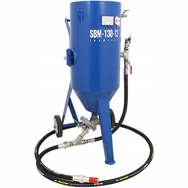 піскоструминна машина оснащена напірним баком з конічним дном, що полегшує ковзання матеріалу, і ревізійним спусковим гачком, що дозволяє швидко спорожнити резервуар від абразиву. Високоякісний абразивний клапан німецької марки Clemco відрізняється підвищеною механічною міцністю і стійкістю до стирання в порівнянні зі стандартними клапанами, встановленими на очисниках конкуруючих компаній. Управління очищувачем легко і безпечно завдяки розташуванню рукоятки управління на кінці робочого проводу. Безперечною перевагою цього рішення є можливість переривання роботи пристрою оператором, безпосередньо виконує процес піскоструминної обробки, що продиктовано останніми правилами техніки безпеки (рішення доступно в якості додаткової опції). Конструкція клапана усуває необхідність в дорогих діафрагмах і поршнях.