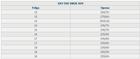 Ланцюги Pewag Snox SUV розмір 590 підходять для таких розмірів шин: