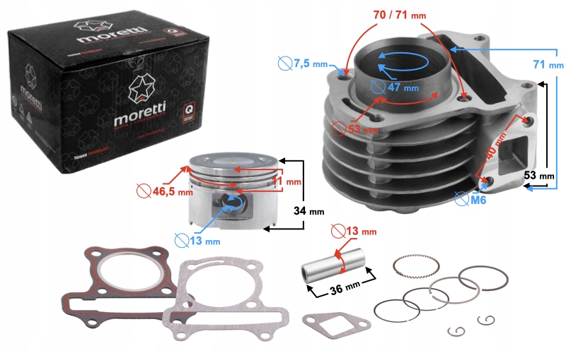 комплект циліндра + головка Sport 80cc-це пропозиція циліндра і головки зі збільшеним об'ємом за відмінною ціною. Комплект дуже добре зроблений і збільшує потужність, що впливає на збільшення прискорення і максимальної швидкості.