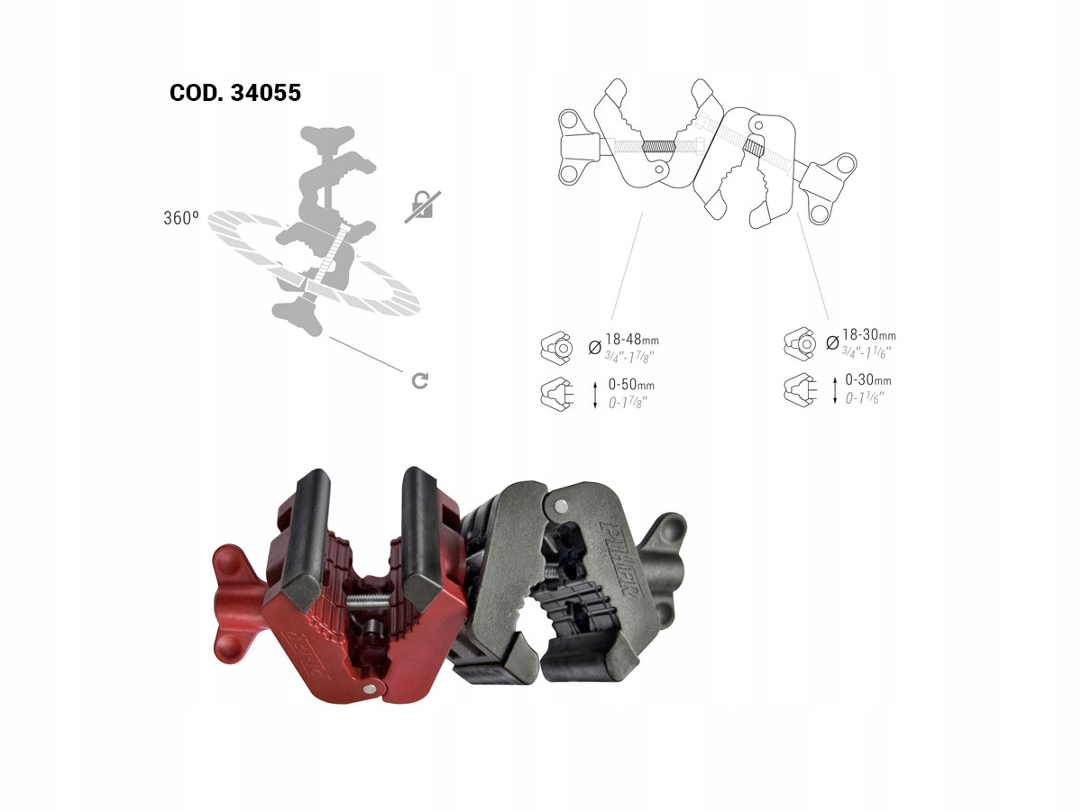 два затискачі MULTI затиску з'єднані за допомогою гвинта M6. легко змінити силу стиснення і взаємне положення за допомогою смушкової гайки гвинта поворотного патрона. можливість повороту на 360º опис товару: