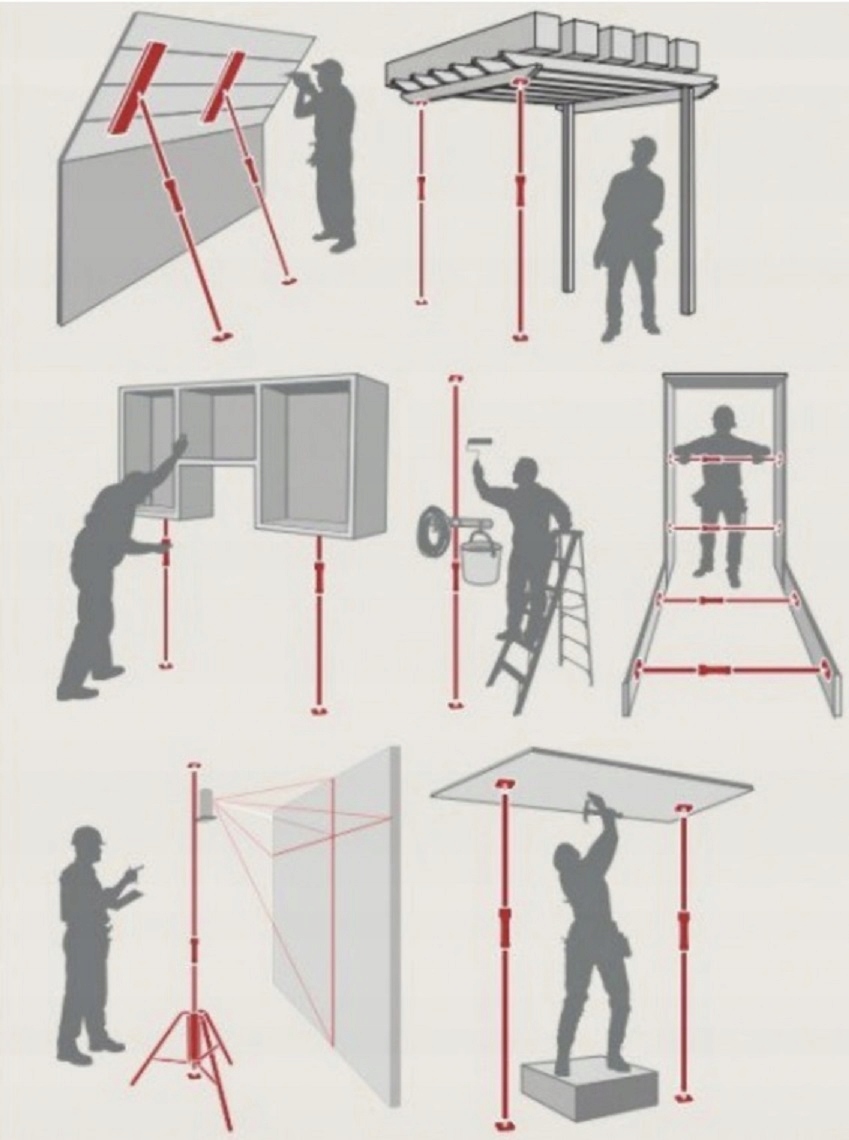 стійка PIHER є незамінним інструментом для різних завдань. Легкий і швидкий в установці, він легко складається до зручного розміру. Макс. 450 кг вантажопідйомності на кожну незнімну стійку дає можливість підтримувати важкі елементи. Багато можливостей застосування, під час будівельних робіт, при складанні меблів, для забезпечення цеху, товару в автомобілі і багато іншого. Ви самі знайдете безліч застосувань для цього універсального інструменту.е>