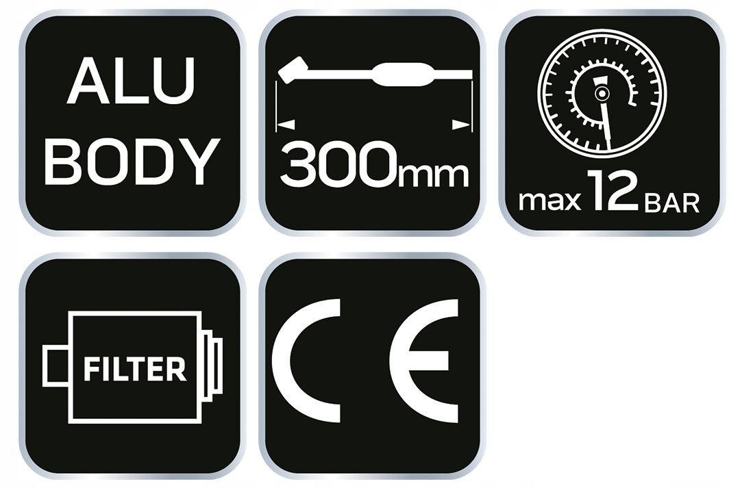 Надувний пістолет NEO з манометром, виготовлений з алюмінію. Максимальний робочий тиск 12 бар. Має практичний гачок для підвішування та шланг довжиною 300 мм. жорсткий подовжувач з тримачем для глибоко вмонтованих клапанів, наприклад, у здвоєних колесах. Сертифікат CE підтверджує високу якість інструменту. Торгова марка NEO виправдовує очікування професіоналів.