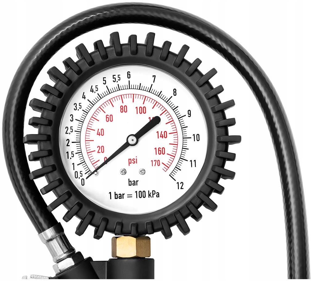 професійний пістолет для накачування коліс оснащений легко читаним манометром з подвійною шкалою. Діапазон вимірювання становить 0-12 бар або 0-174 psi. Завдяки вбудованому зливному клапану ви легко виправите занадто високий тиск. Робота з пневматичним колісним пістолетом більш ніж зручна. Датчик тиску в шинах швидко підключається і забезпечує більшу свободу руху завдяки шлангу довжиною 0,44 м.при робочому тиску 0-8 бар ви можете легко встановити оптимальний тиск однією рукою. е>