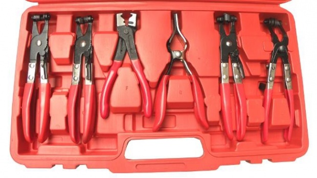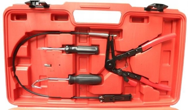 плоскогубці з поворотними губками-плоскогубці підходять для більшості типів пружинних затискачів, поворотні щелепи розрізаються для хорошого утримання великих і маленьких затискачів під будь-яким кутом. Храповий замок, що дозволяє утримувати щелепи в 5 різних положеннях. Замок дозволяє надійно утримувати натягнуту стрічку .Чи>